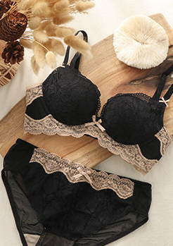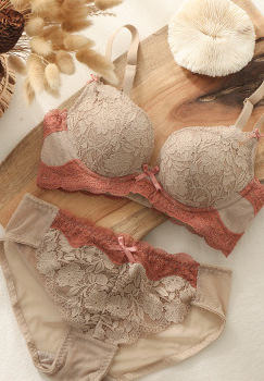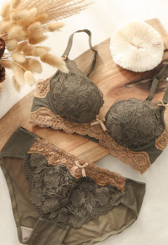乳膠內衣 集中托胸蕾絲內衣(含內褲)(茶/黑/綠/白)
