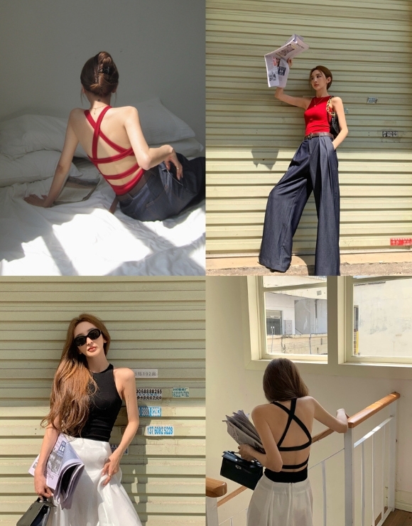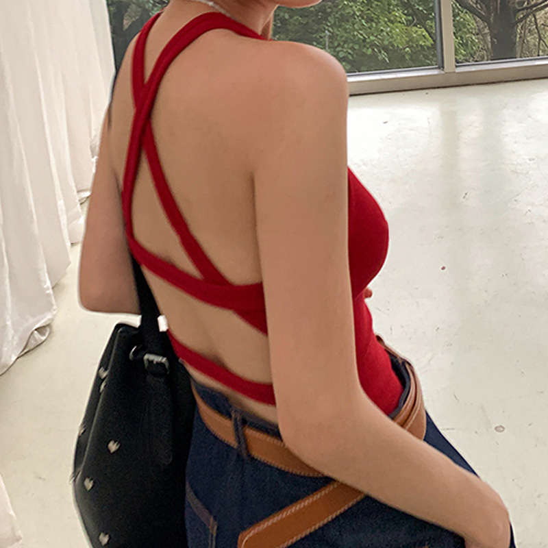 性感獨特的設計,展現修長線條。後背交叉綁帶設計,增添運動感。彈性佳的面料,穿著舒適貼身。無袖剪裁,清涼舒適。適合搭配牛仔褲或短裙,輕鬆打造休閒又時髦的造型。無論是外出逛街或是健身活動皆非常適合。