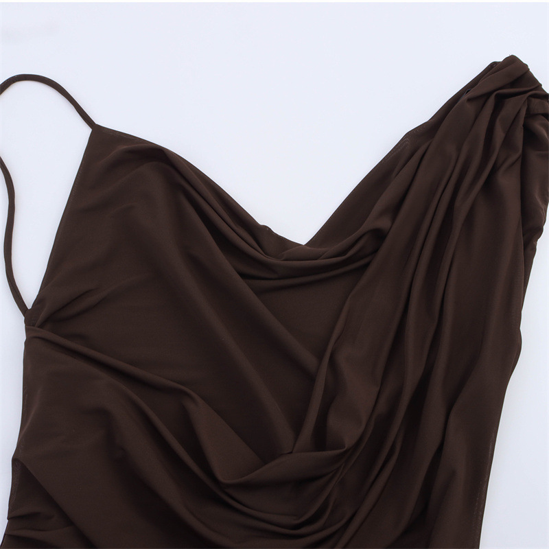 這件洋裝擁有獨特的不對稱設計,穿著時能勾勒出流暢的曲線美。精心設計的收腰線能恰到好處地凸顯女性的腰身,展現引人注目的優雅身形。剪裁簡潔時尚,輕盈的網紗面料讓整體觀感更顯氣質。無論是正式場合或是日常穿搭,這件洋裝都能為妳增添迷人的氣質。