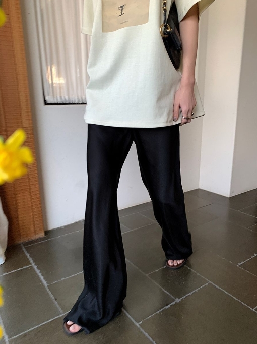 綢緞鬆緊高腰寬褲(黑/白/藏青/香檳)