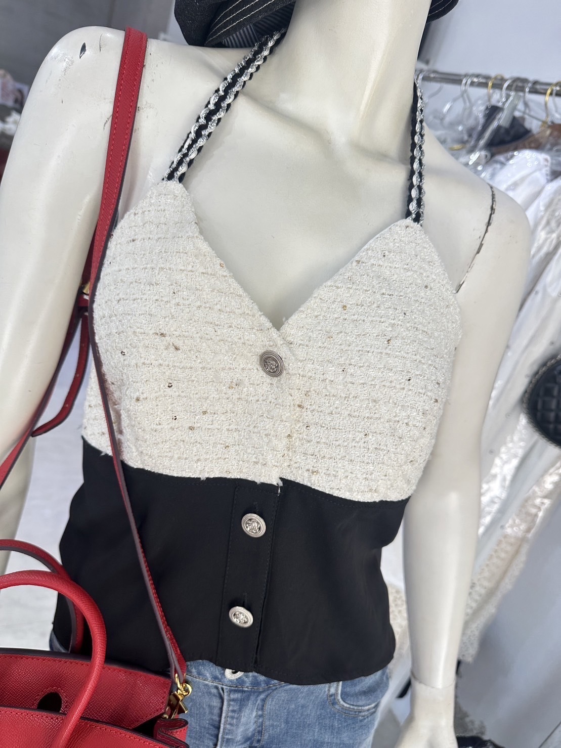 有胸墊 細肩帶上衣 (黑/白) 顏色請備註!