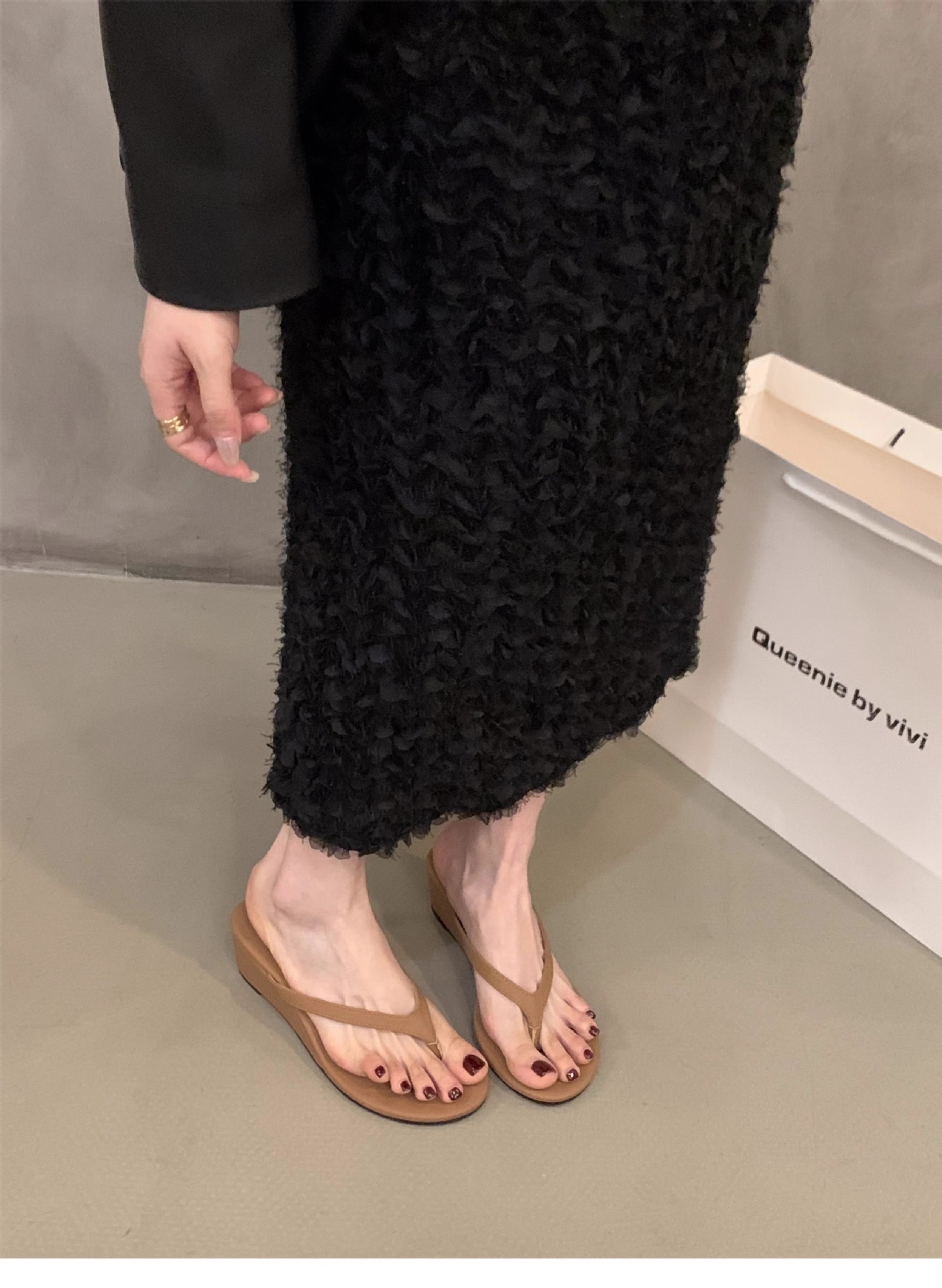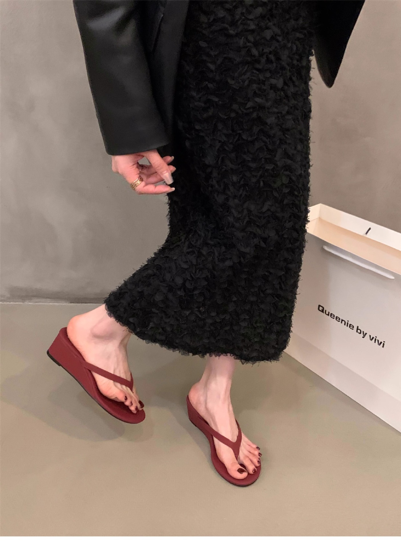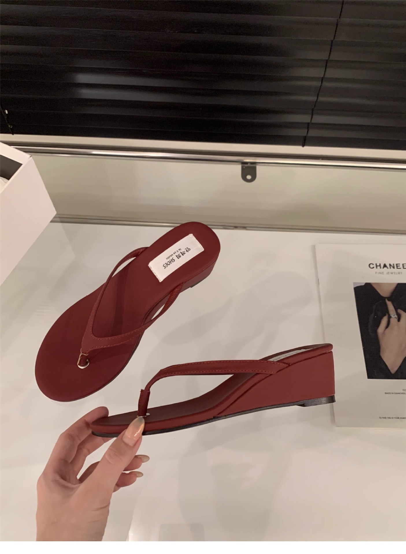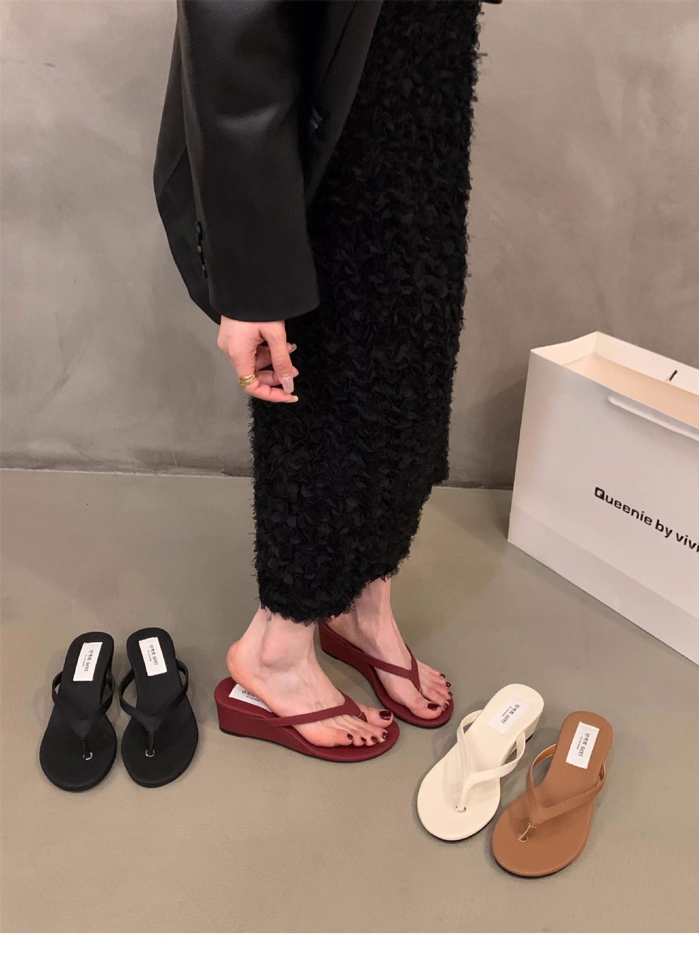 這款優雅時尚的夾腳楔型拖鞋,是您今夏必備的輕巧舒適單品。柔軟的前掌夾腳設計,搭配包覆性極佳的楔型鞋底,不僅能為您的雙腳提供貼心支撐,更能塑造出修長亭亭的腿部線條。選用優質人造皮革材質,不僅耐穿更能呵護您嬌嫩的雙足。鞋身簡約時尚,黑、白、紅三色可選,無論搭配薄紗洋裝或是休閒牛仔褲,都能輕鬆展現個人獨特風格。簡單的優雅設計,打造精緻時尚的度假氣息,是您夏日時尚造型的最佳襯托。