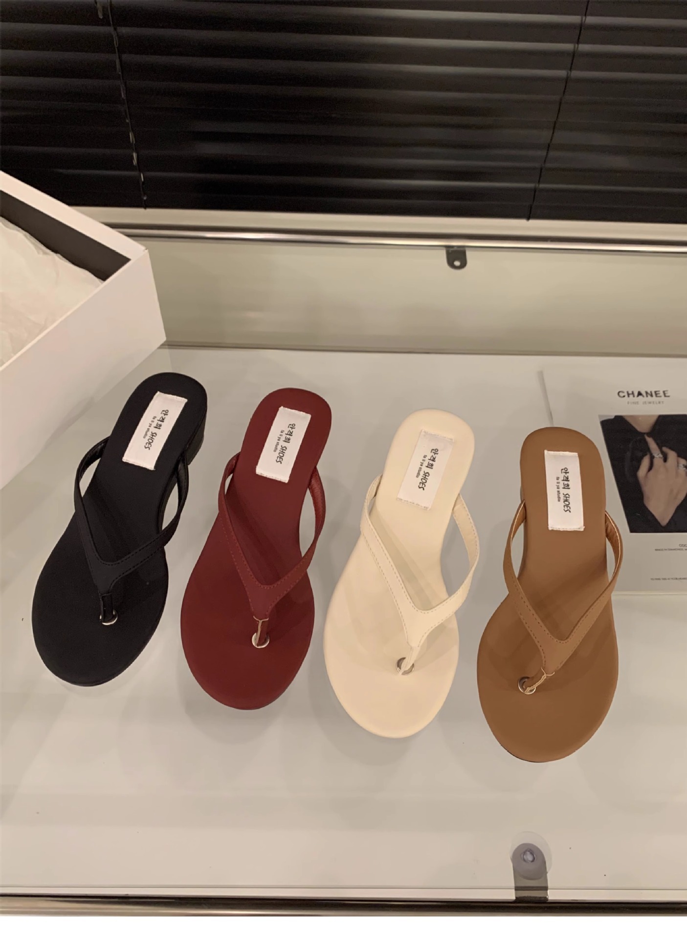 夾腳楔型拖鞋(35-40)(黑/白/紅)