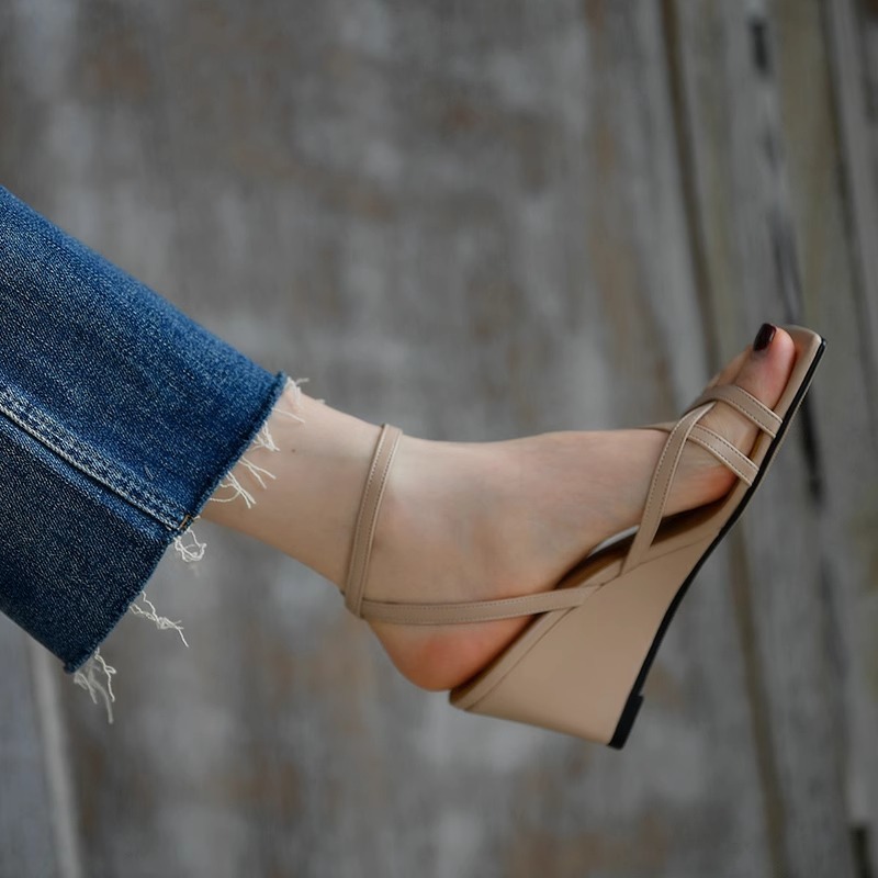 優雅簡約線條楔型涼鞋