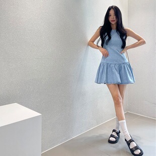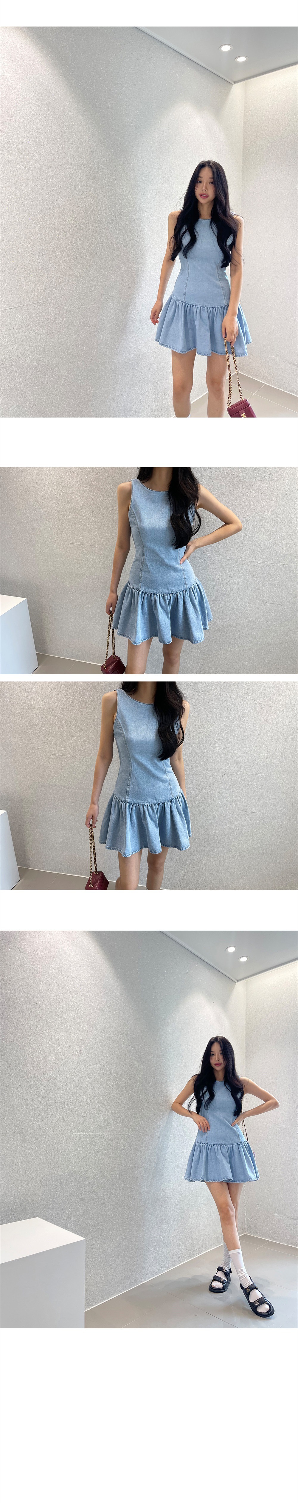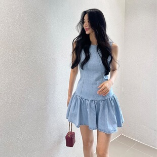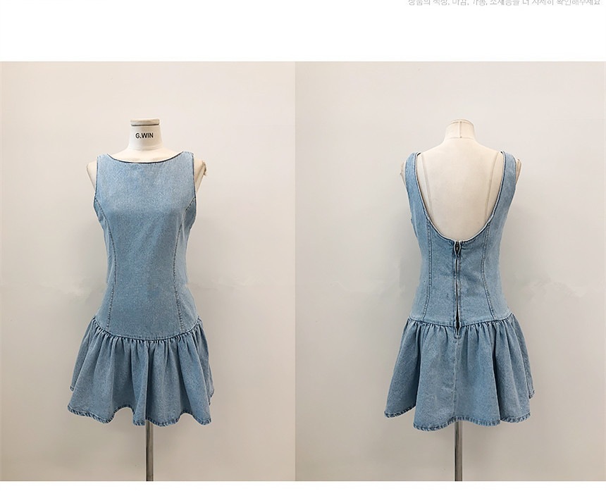 露背收腰 牛仔小洋裝
