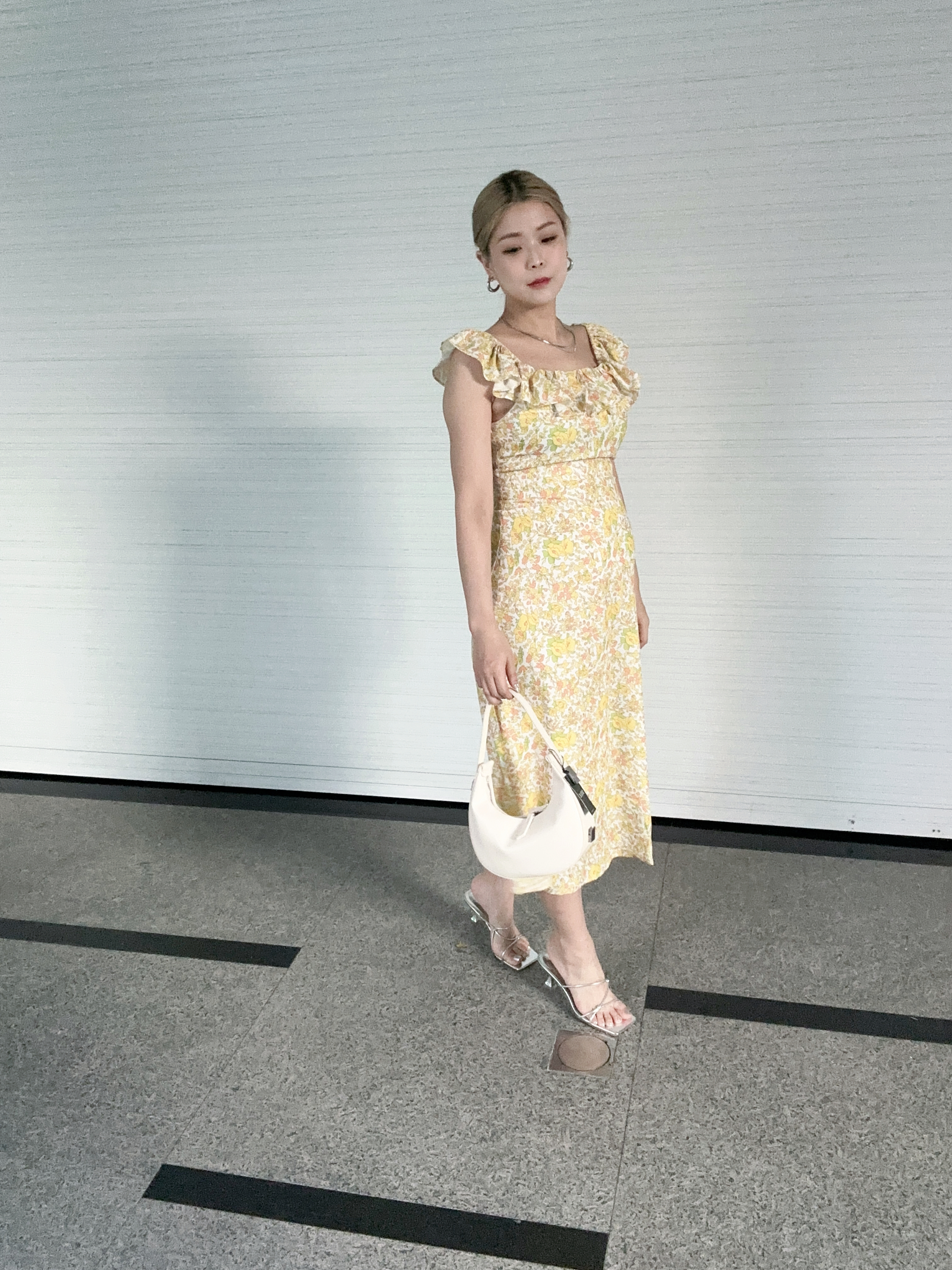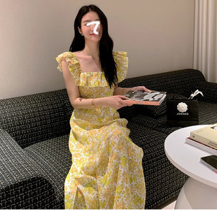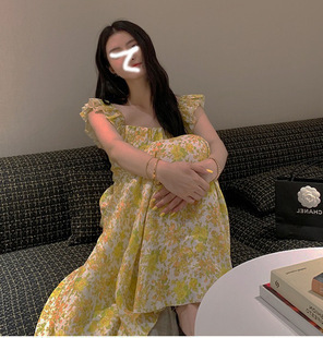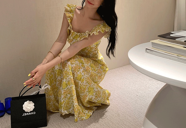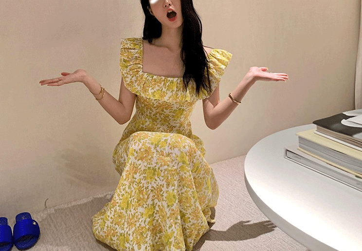 氣質碎花方領長洋裝