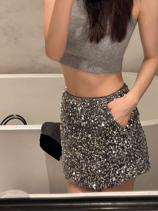 滿滿亮片堆疊高腰短裙