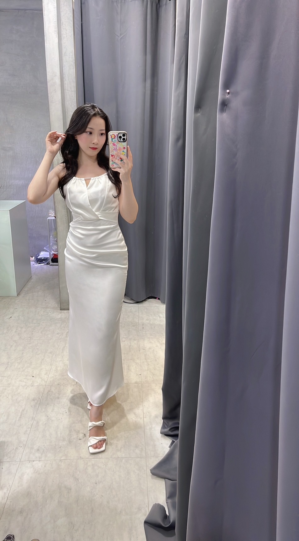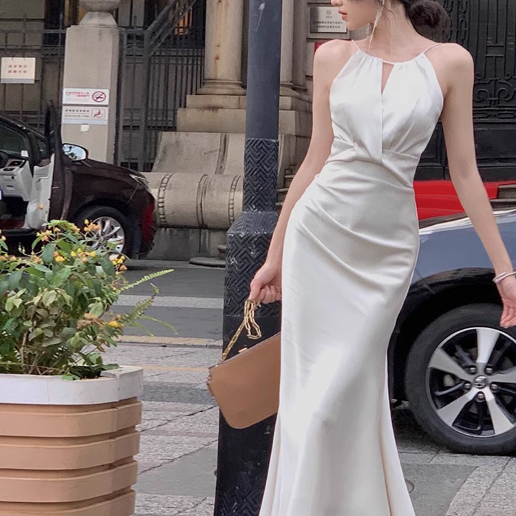 優雅迷人的修身剪裁,展現出女性曼妙的身材線條。柔軟的緞面面料質感絕佳,營造出優雅高貴的氣質。精心設計的扭轉腰身,增強腰身的修飾效果。魚尾裙擺流暢垂墜,為造型增添了動人優雅的端莊感。此款洋裝適合各種正式場合,是追求時尚品味的女性的不二之選。