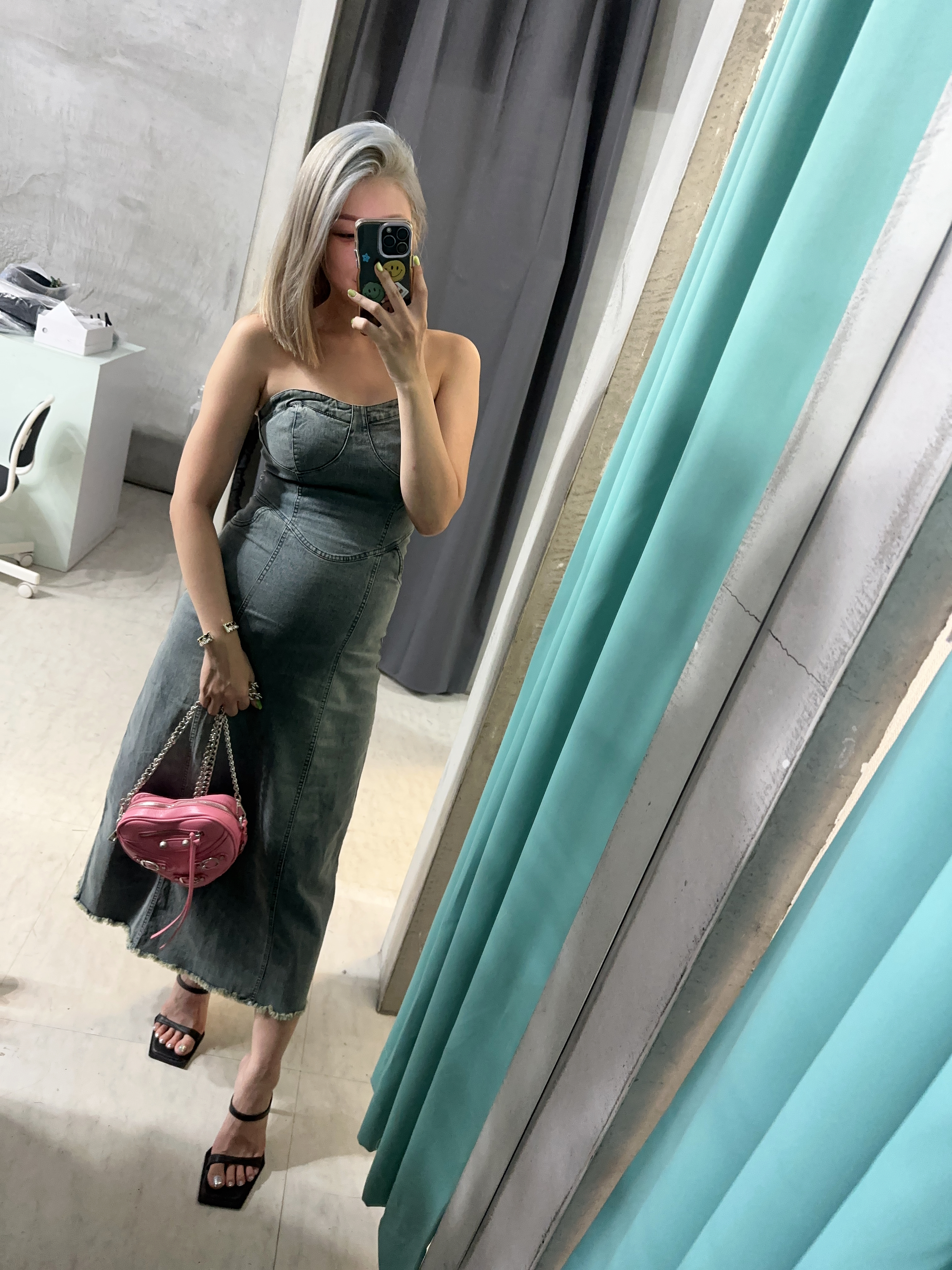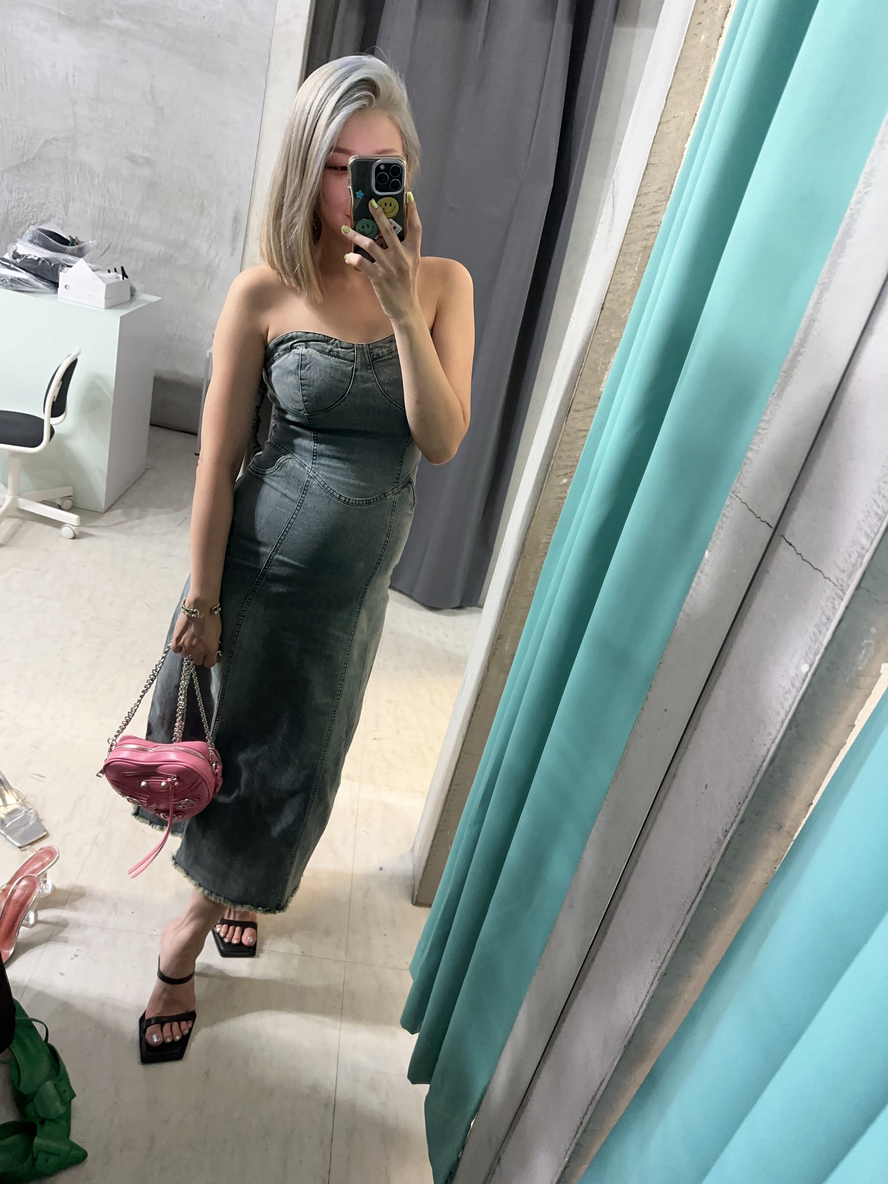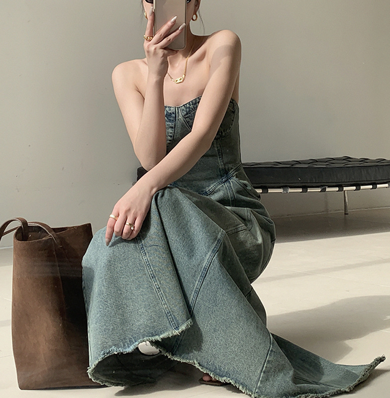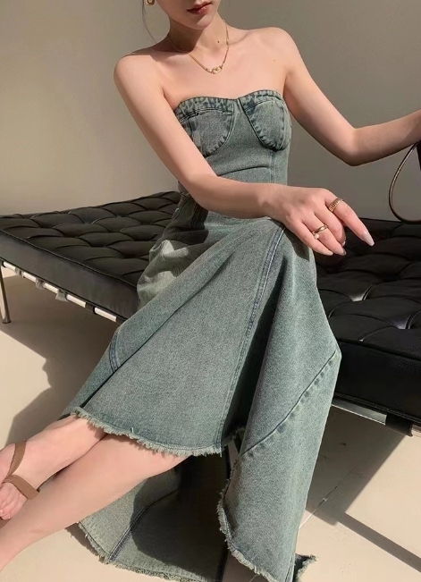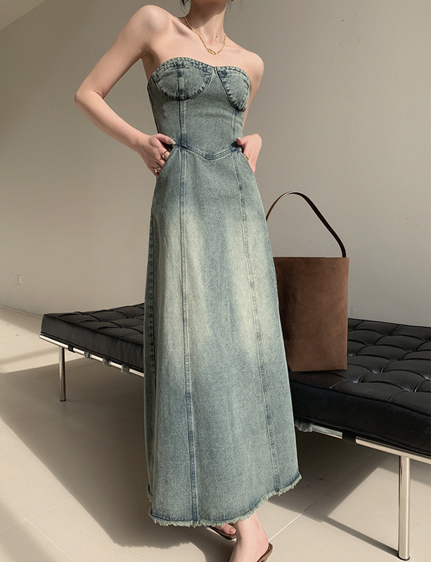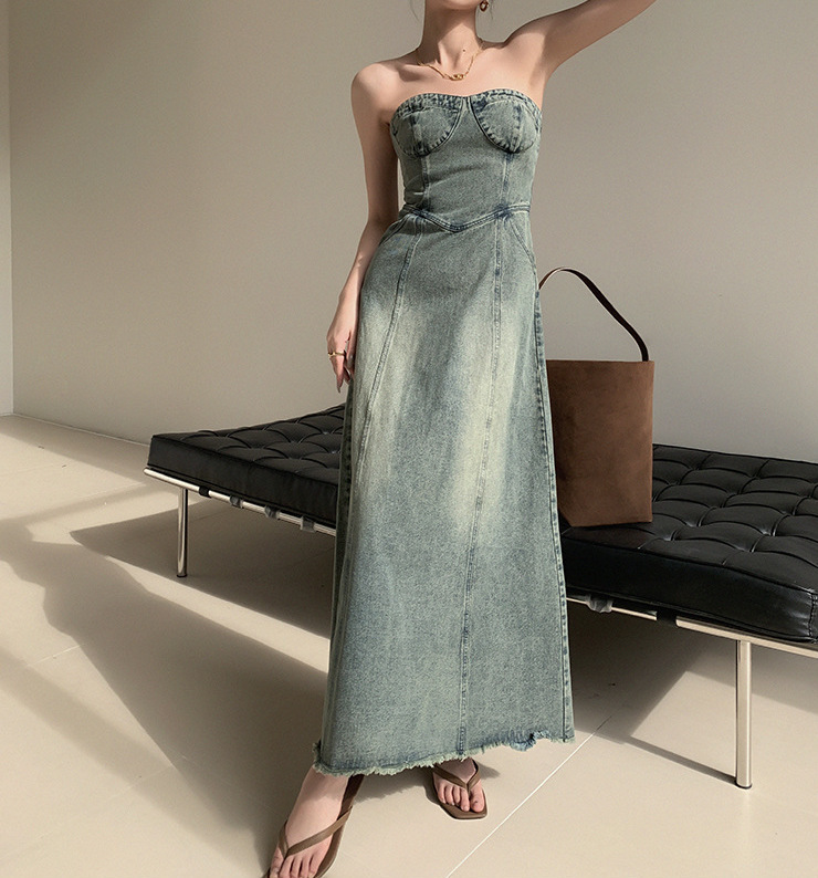 復古刷色 平口牛仔洋裝