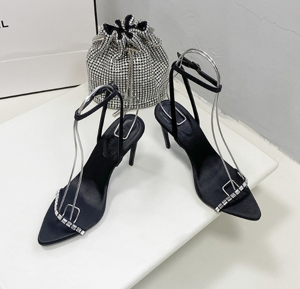 長型水鑽 尖頭一字跟鞋(34-39)(9公分/7公分)