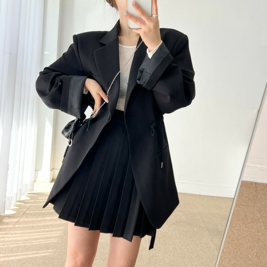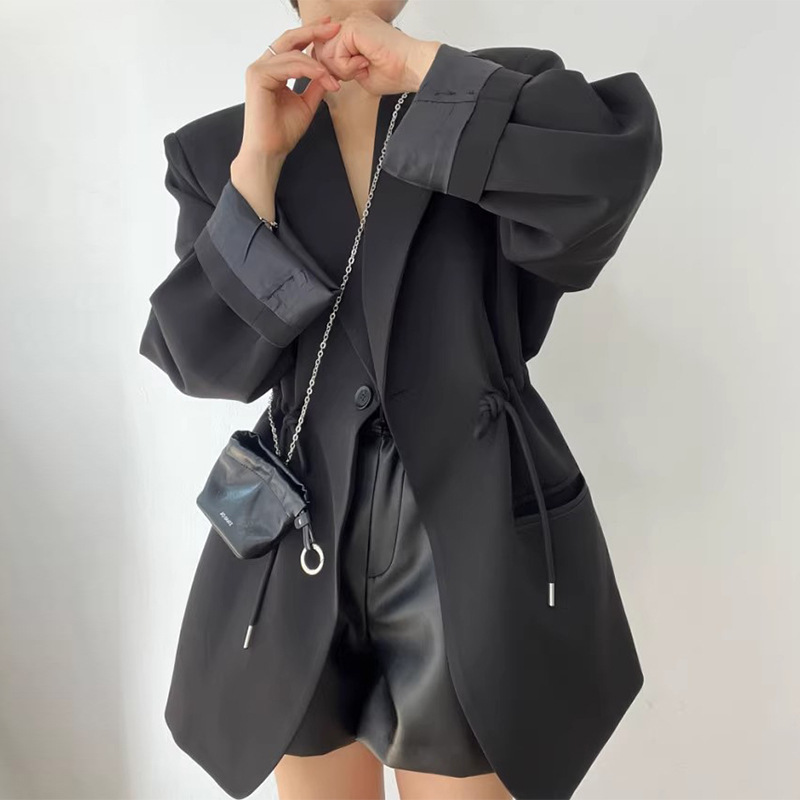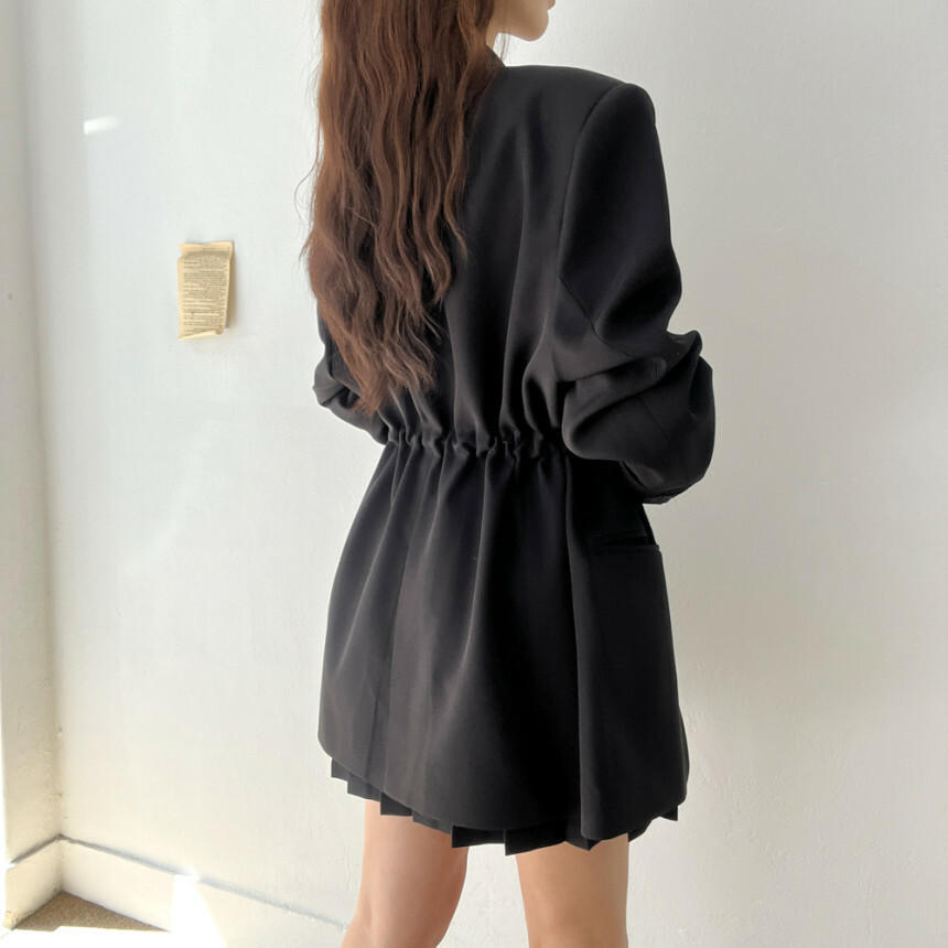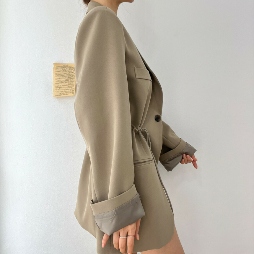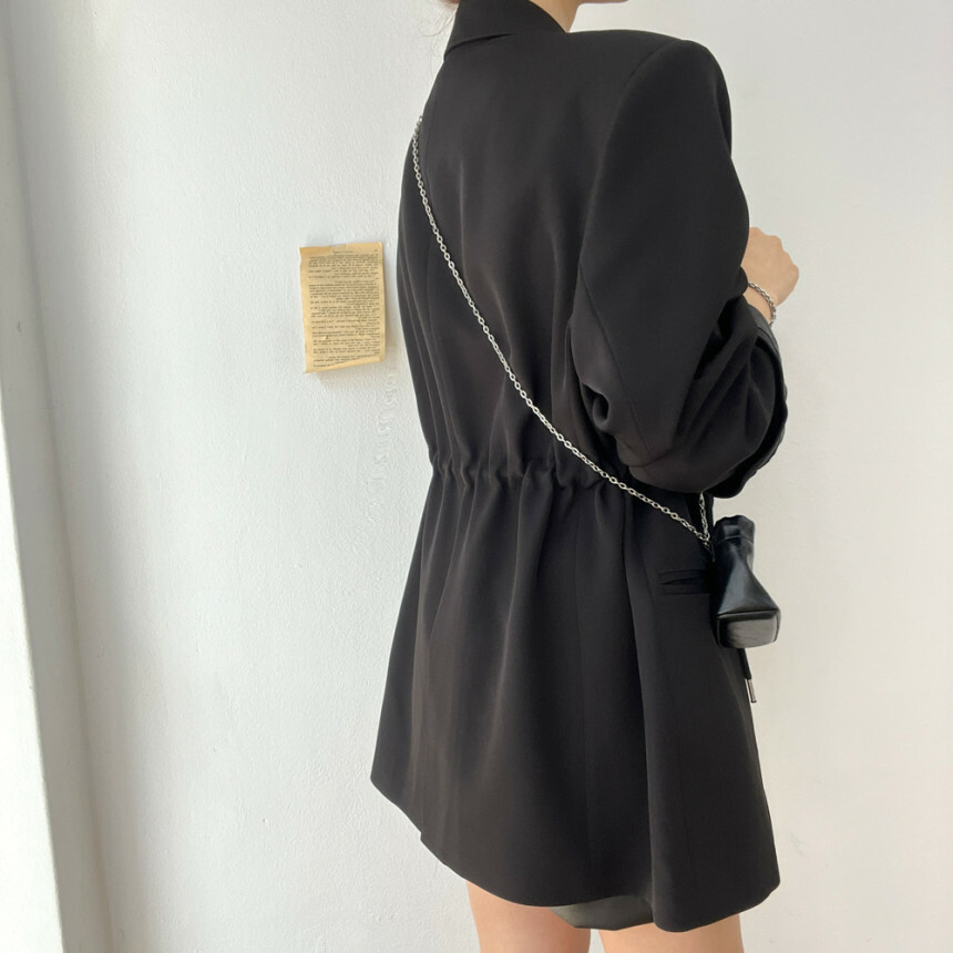 這件商品是採用簡約俐落的長版西裝剪裁,搭配收腰抽繩設計,能彰顯女性的迷人曲線。面料選用高質感的材質,有卡其色與黑色可選。利落的廓型與袖口設計,適合搭配各種造型,為造型增添優雅氣質。無論是上班族或是休閒約會,都能展現時尚氣質。