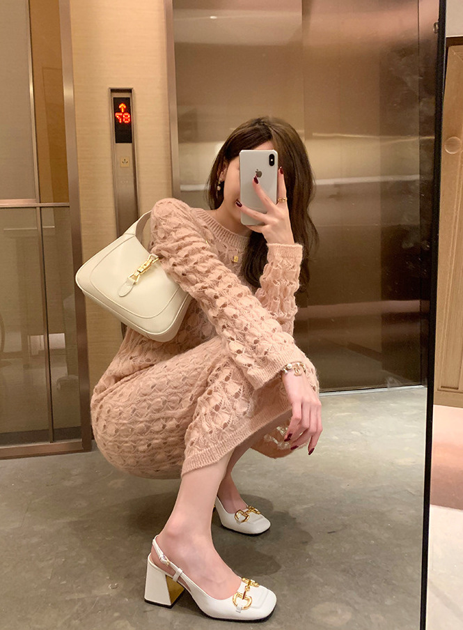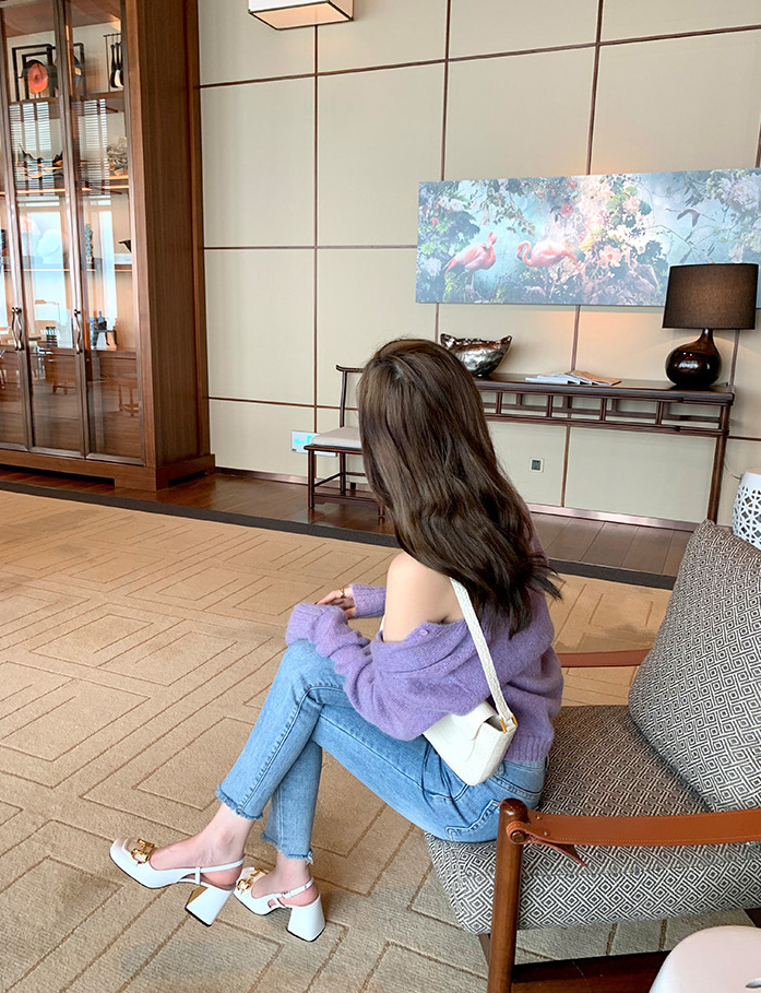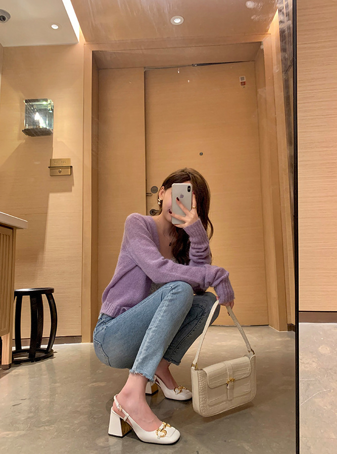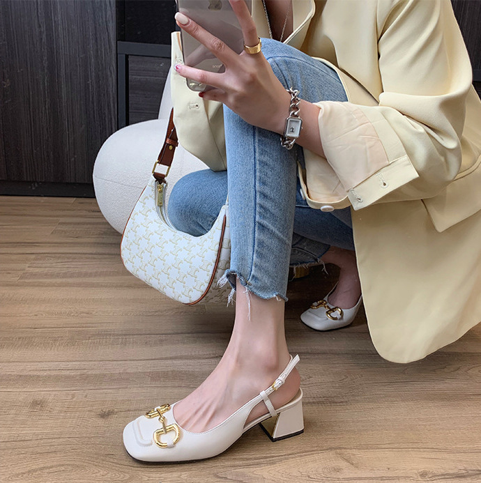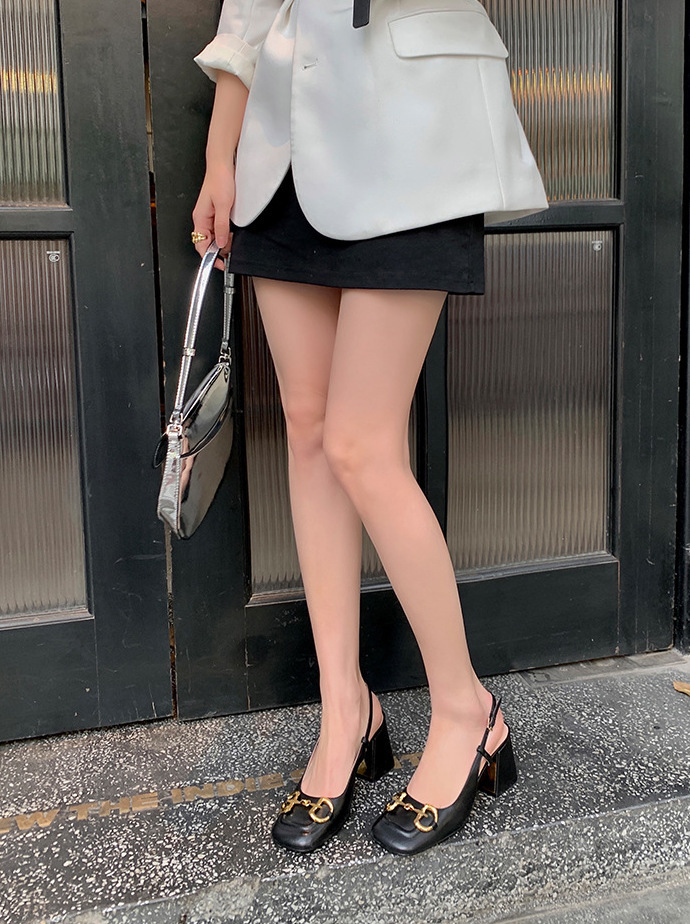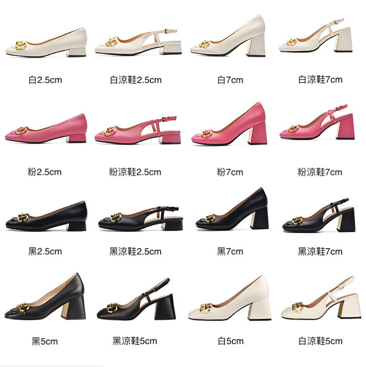馬銜釦 牛皮粗跟跟鞋(34-40)(黑/白/粉)