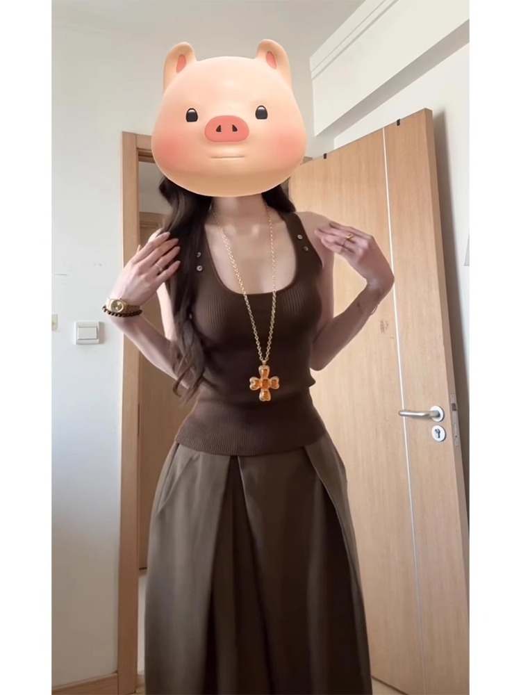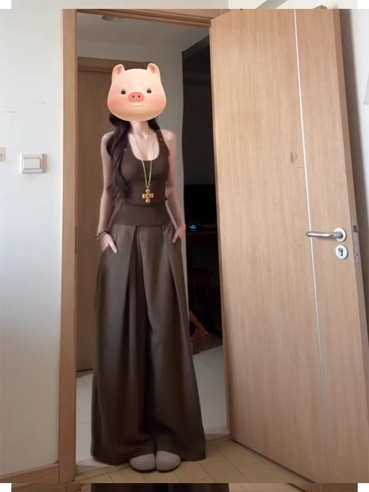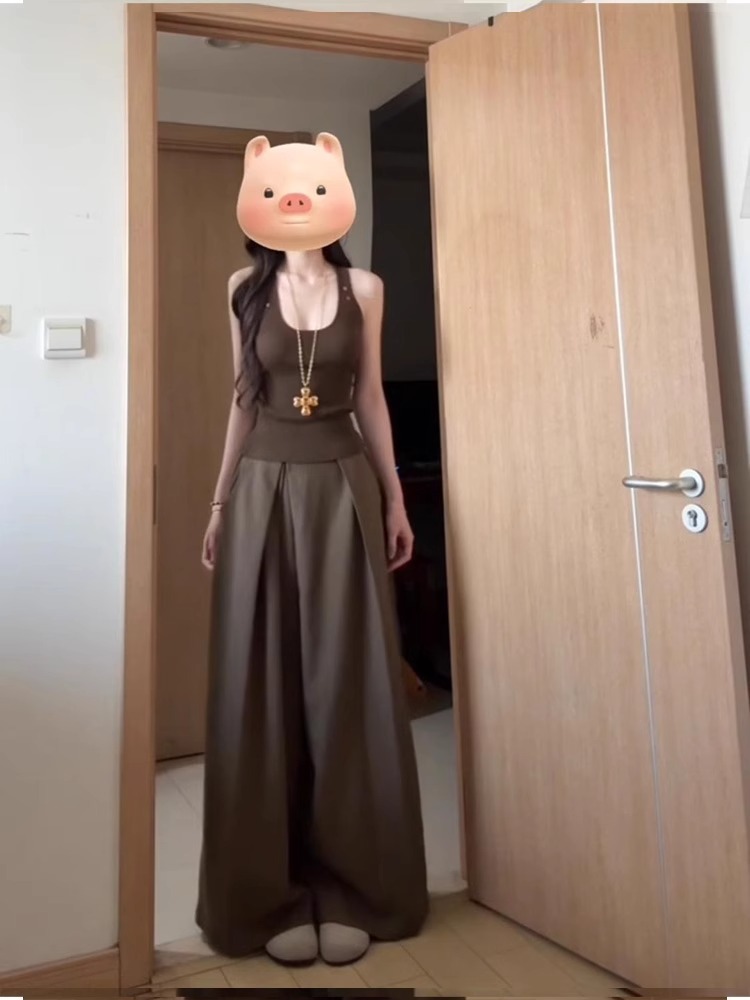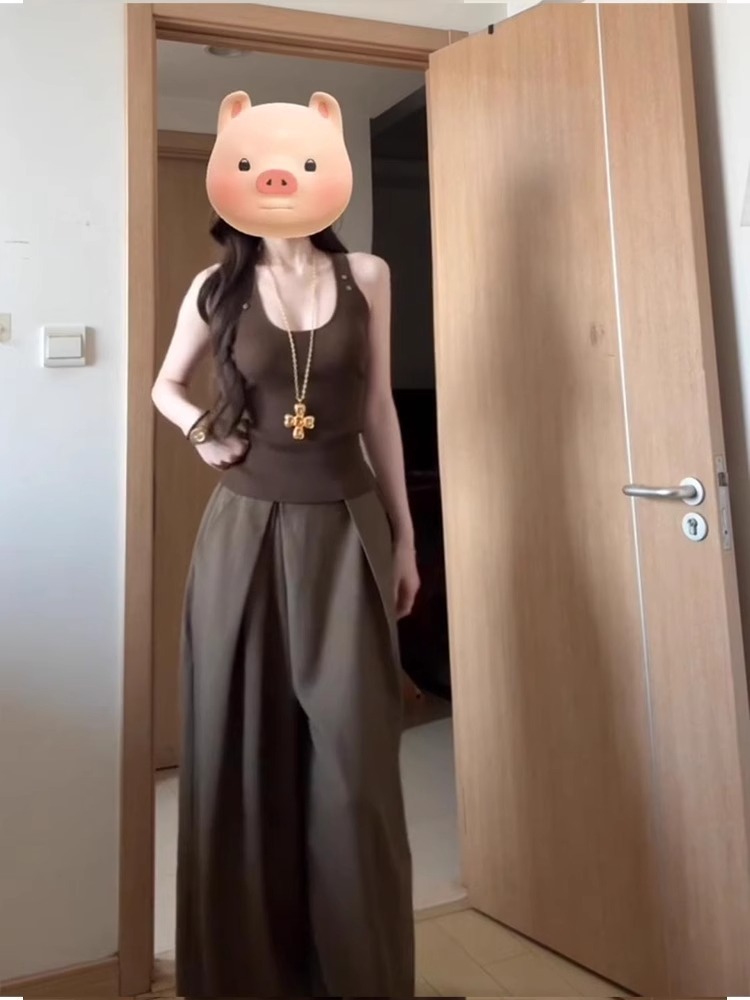 U領背心+高腰寬褲(2件組)
