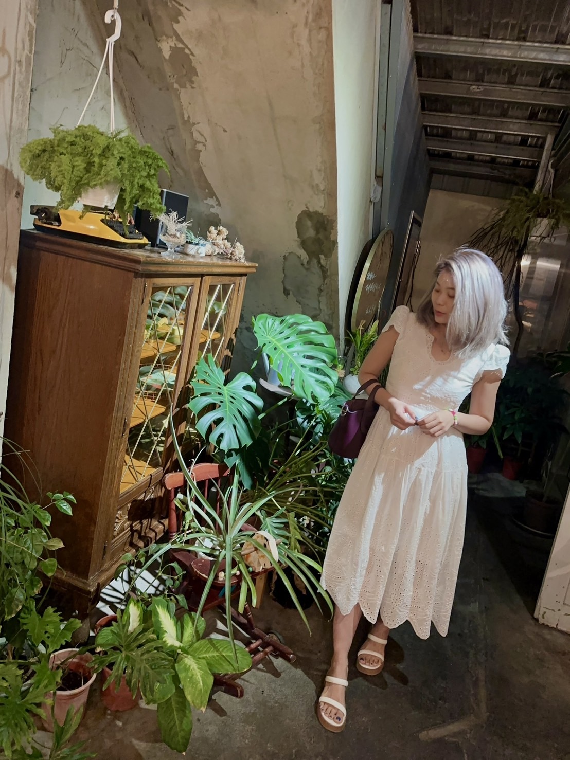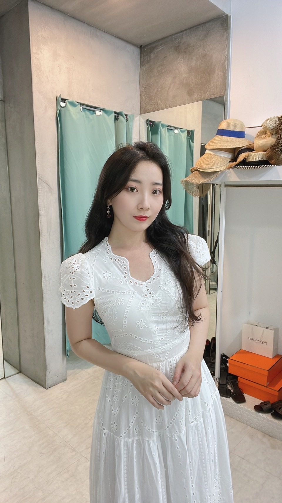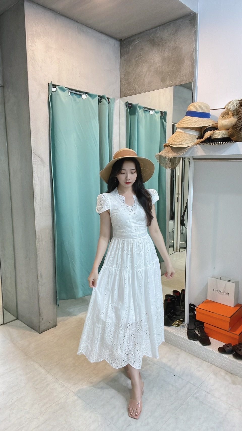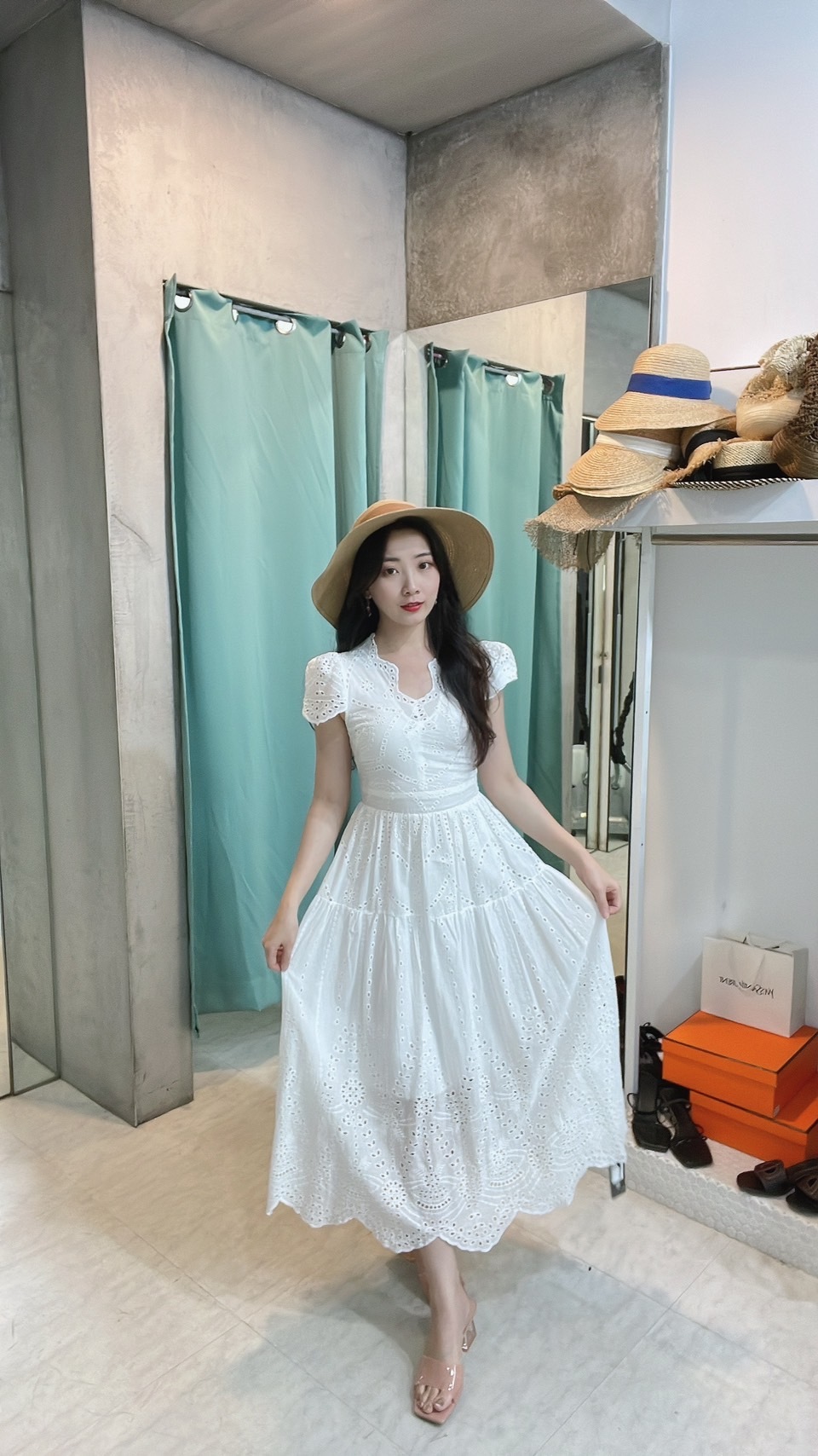 優雅氣質:純白色棉質洋裝,以刺繡帶出精緻優雅的氣質。