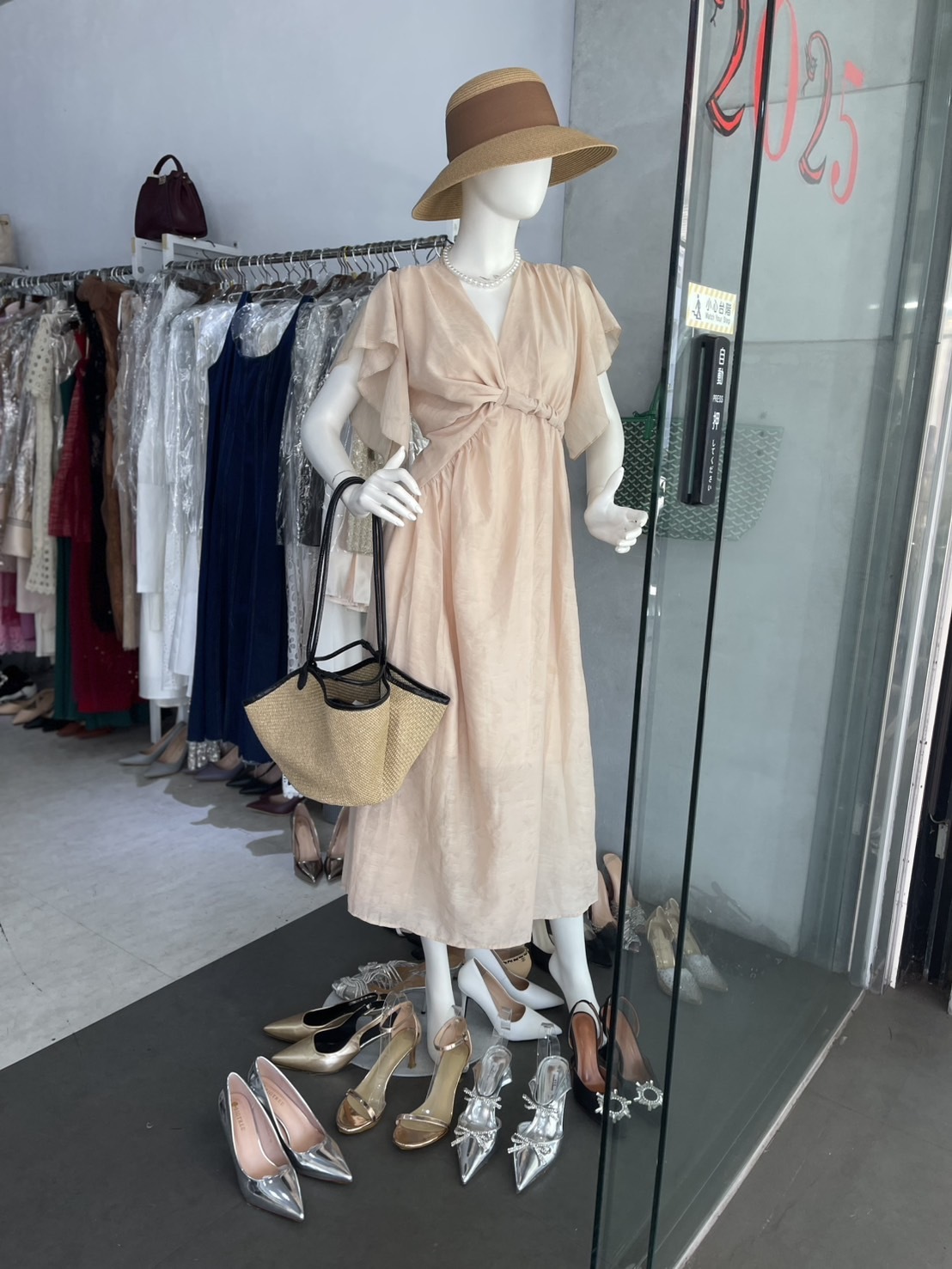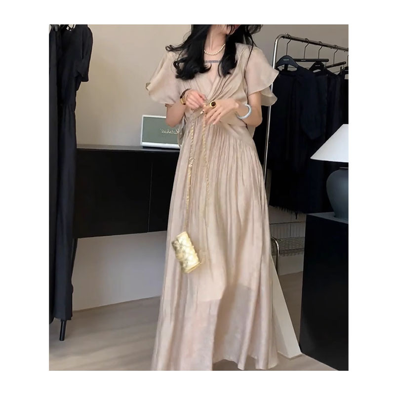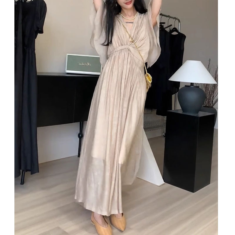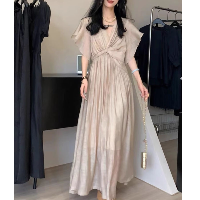 這款洋裝蘊含優雅與時尚的氣質,採用柔軟舒適的面料,打造出俐落流暢的剪裁。不對稱的V領設計增添女性魅力,浮雕皺褶的獨特細節錦上添花,彰顯穿著者的高雅品味。這件洋裝適合各種場合,讓你在春夏季節散發迷人的迷人氣質。
