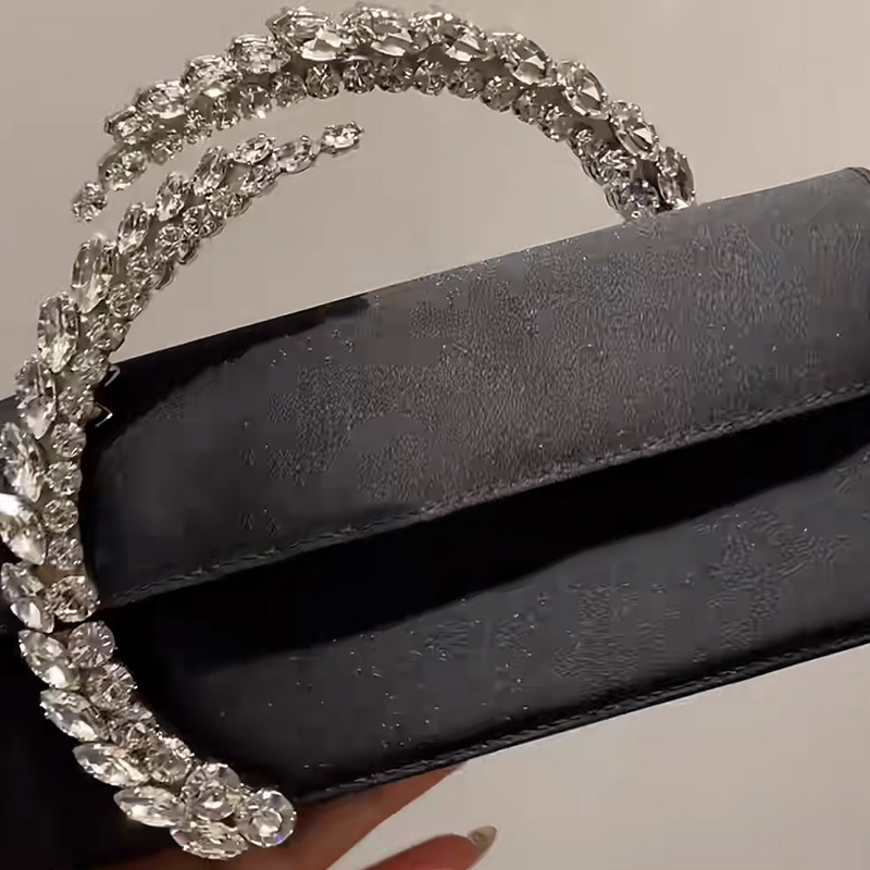 極富光彩的水晶藤蔓形狀大大提升了這件黑色緞面手拿包的時尚魅力。精緻的水晶點綴為整個包款增添了奢華氣質,適合搭配晚宴或正式場合的造型。輕巧的造型非常方便攜帶,讓您優雅迷人地出席各種隆重場合。