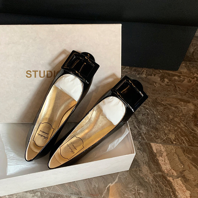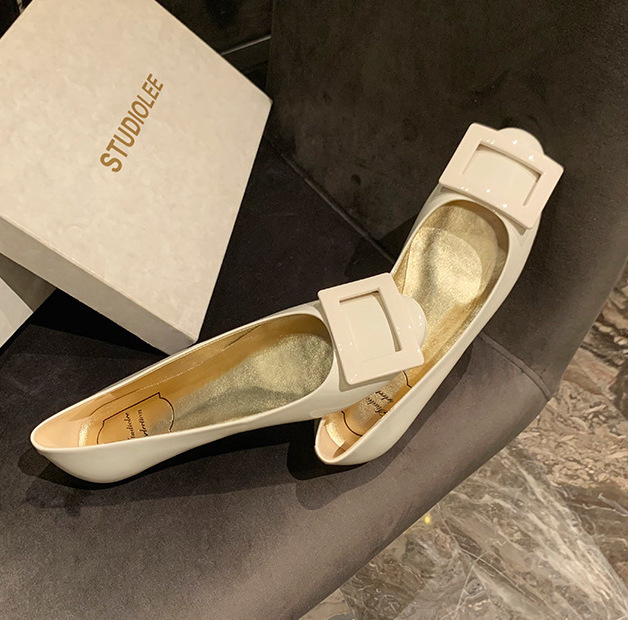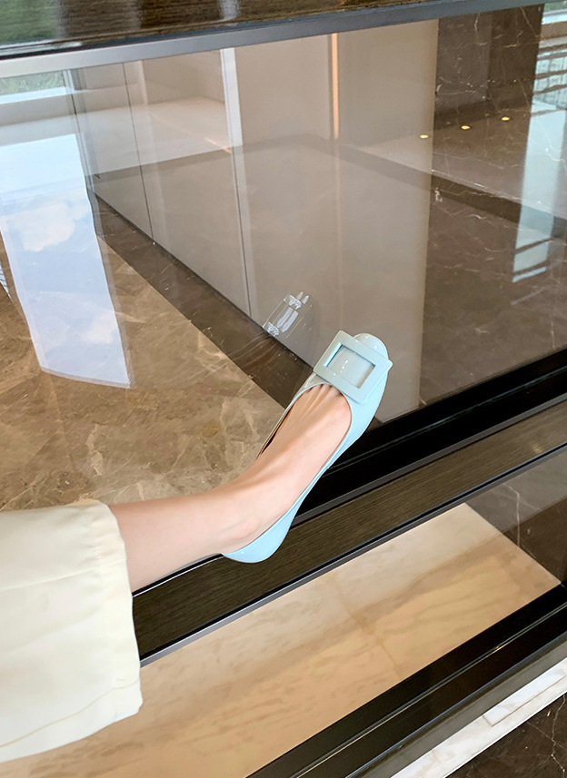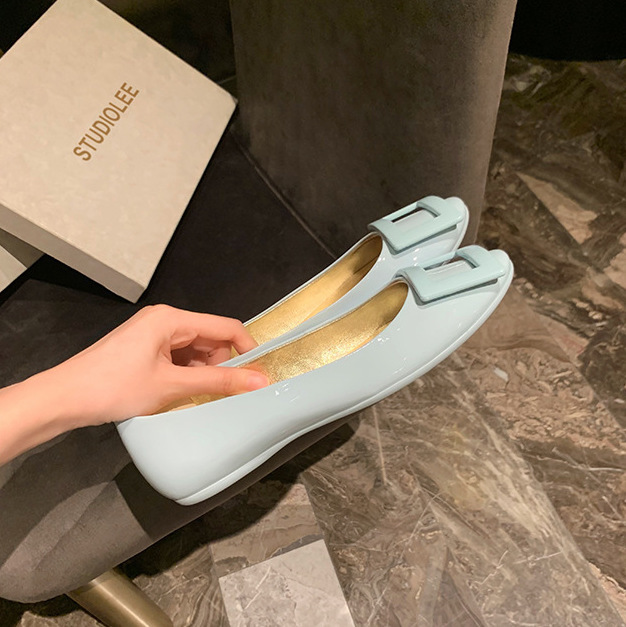 漆皮方釦平底休閒鞋(35-40)(5色)