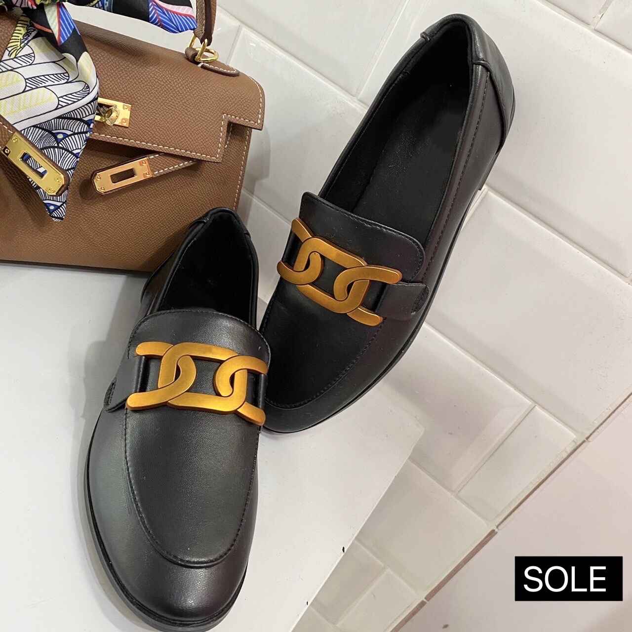 造型鍊條 真皮樂福鞋(34-40)(黑/白/棕)