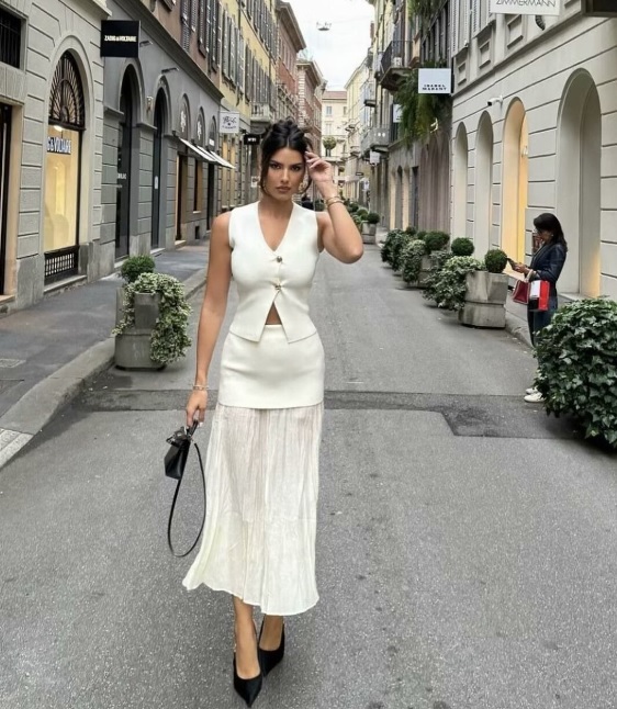 精心搭配的背心和長裙組合,展現時尚大方的穿搭風格,適合多元場合配戴,讓妳自在優雅散步街頭。