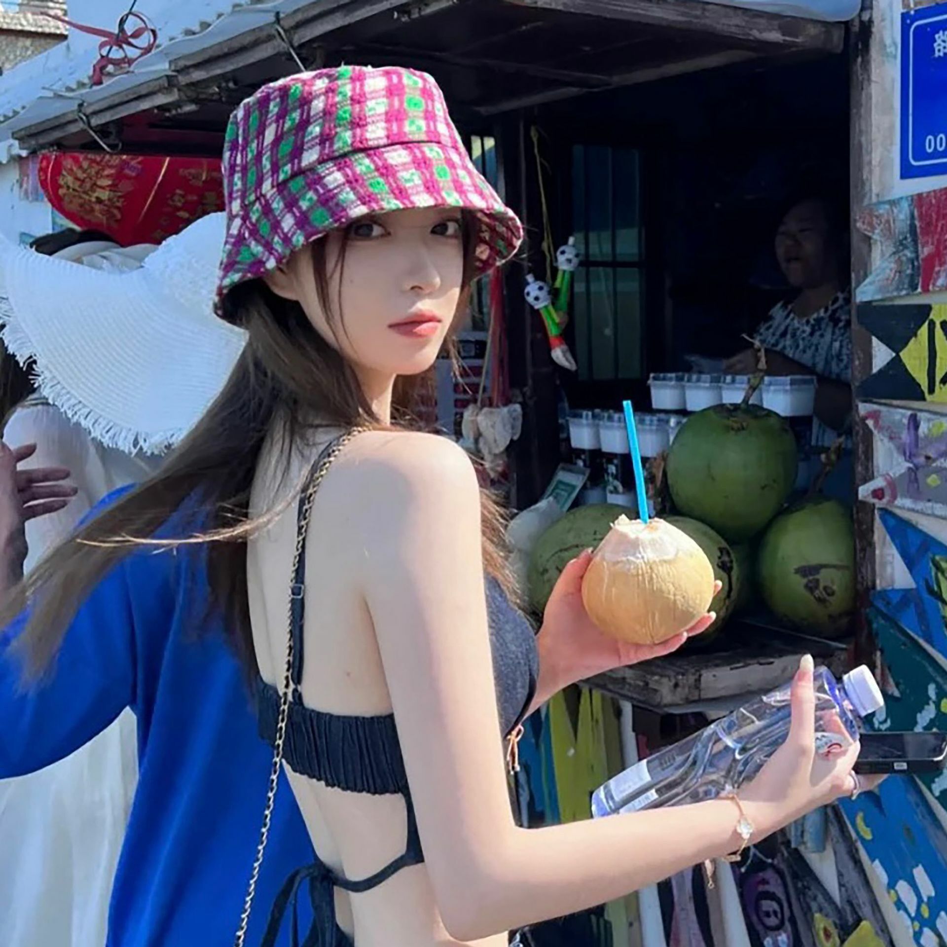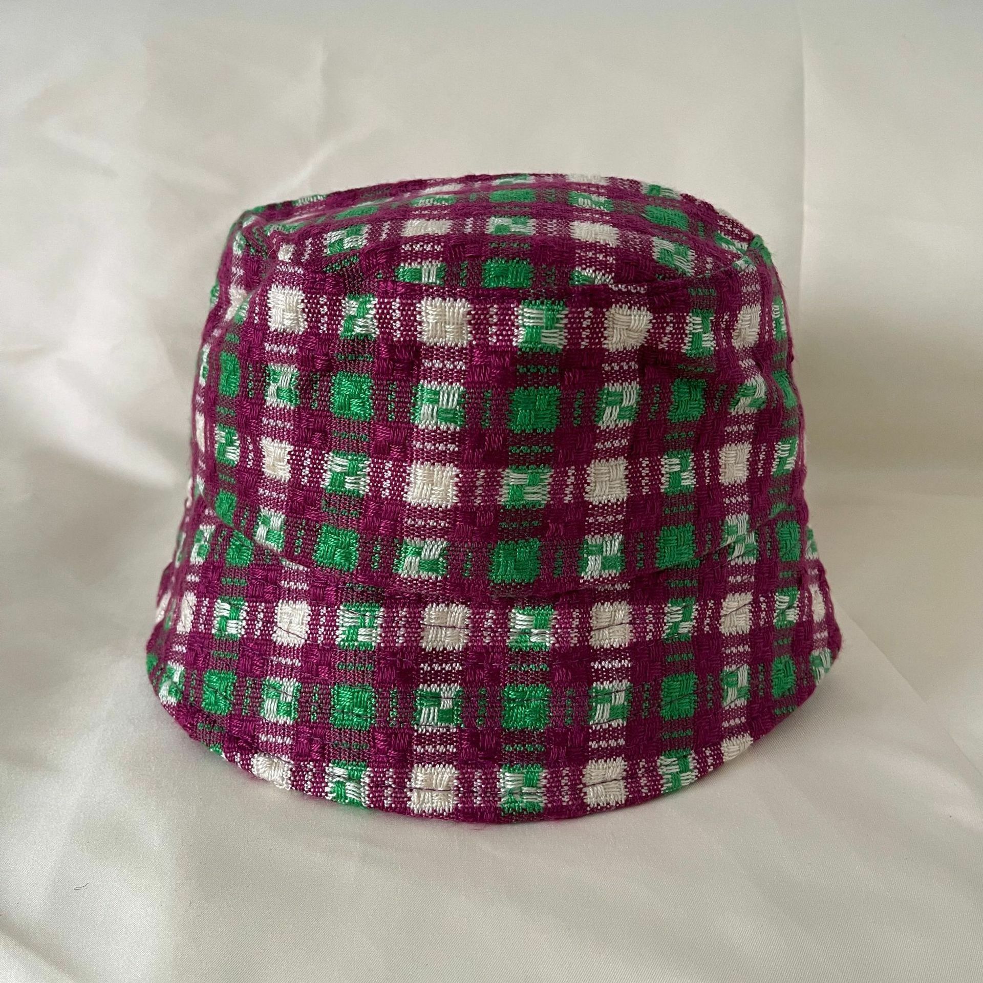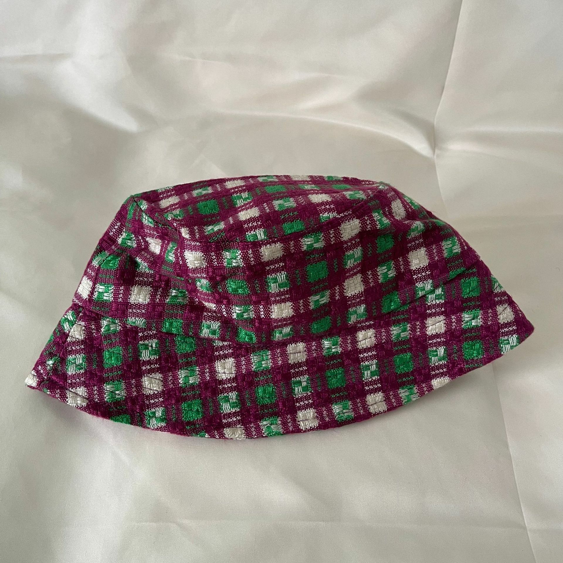 撞色格紋 韓國漁夫帽