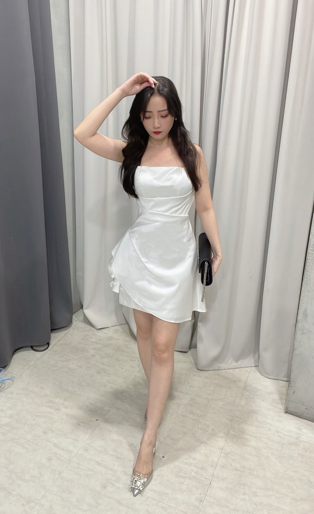 這款時尚洋裝採用優質織料,打造出俐落又優雅的線條。細肩帶設計能恰到好處地凸顯雪白肩頸線條,裙襬則以流暢的花瓣摺痕增添動感,讓整體造型顯得聖潔又時髦。不論是日常穿搭或是特殊場合,這件洋裝都能為您點亮迷人氣質。