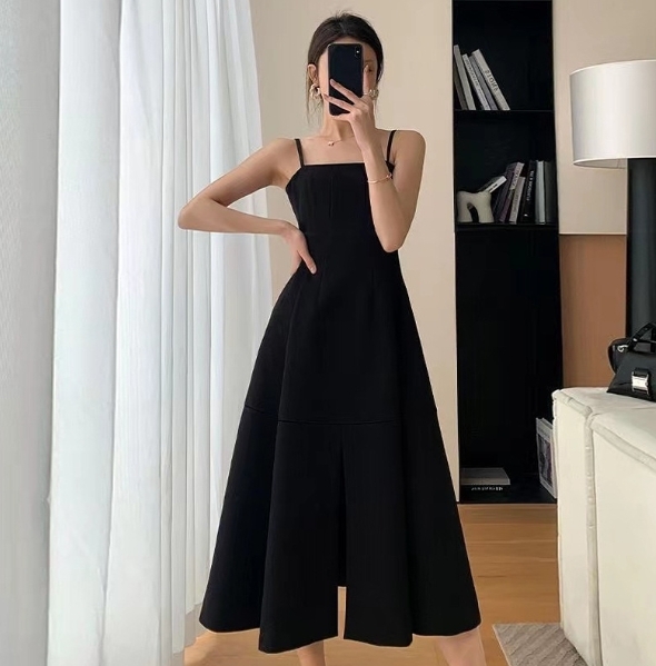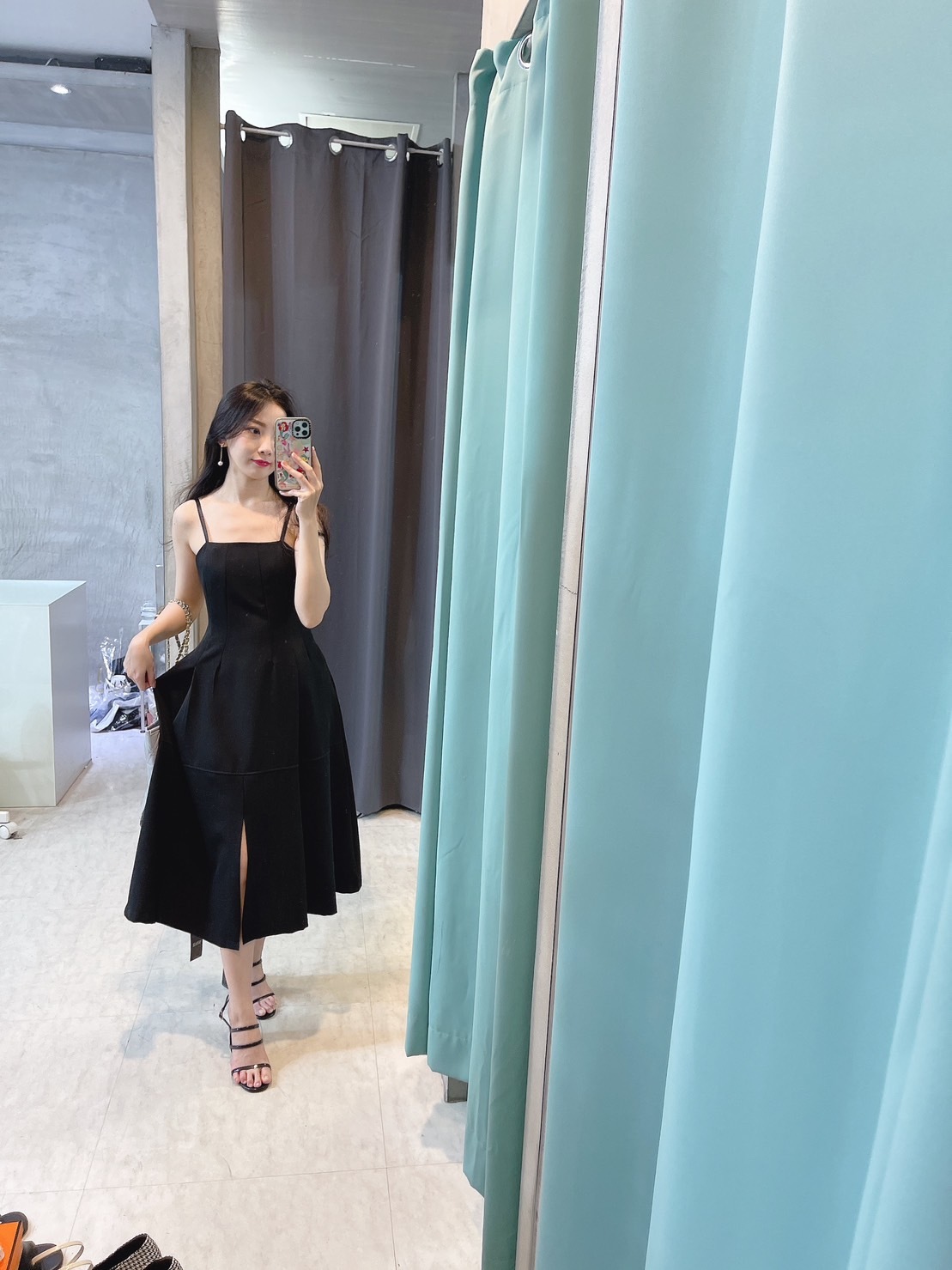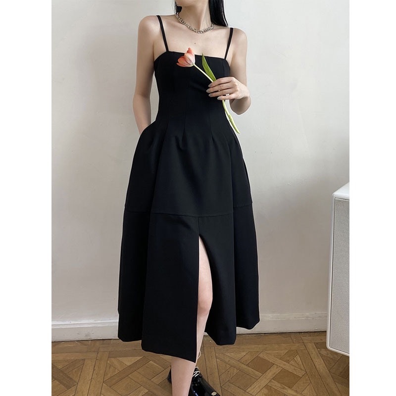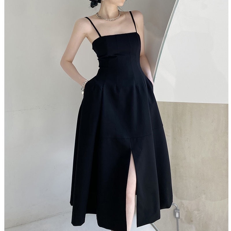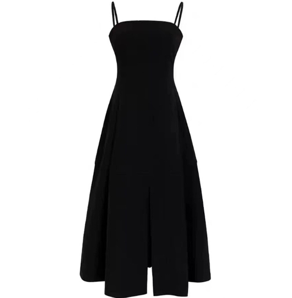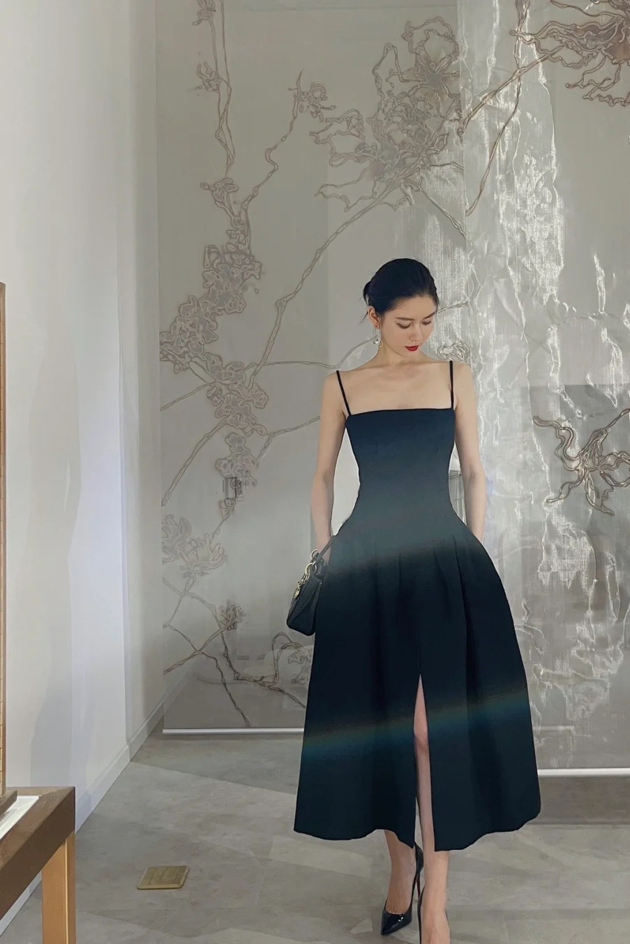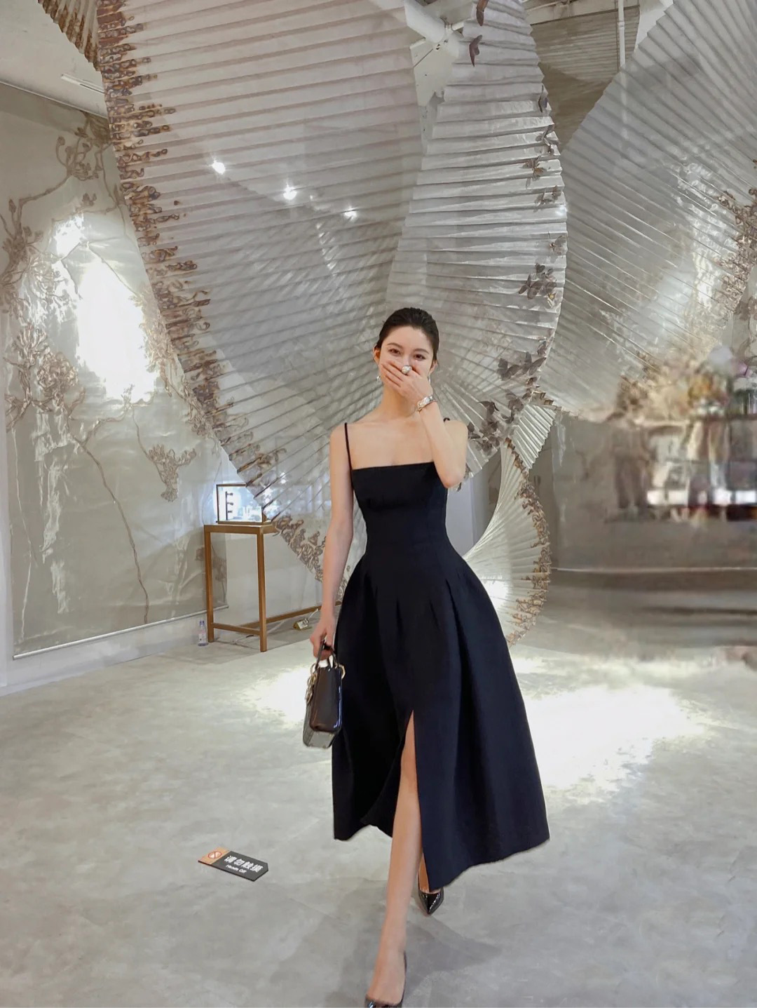 優雅動人的設計!這件優雅時尚的黑色洋裝展現出女性的魅力與自信。優雅方領勾勒迷人曲線,收腰設計突顯妳的纖細腰身。飄逸長裙襬加上前開衩,散發迷人知性美。無論是參加宴會或是日常約會,這件洋裝都能讓妳優雅迷人地亮相。