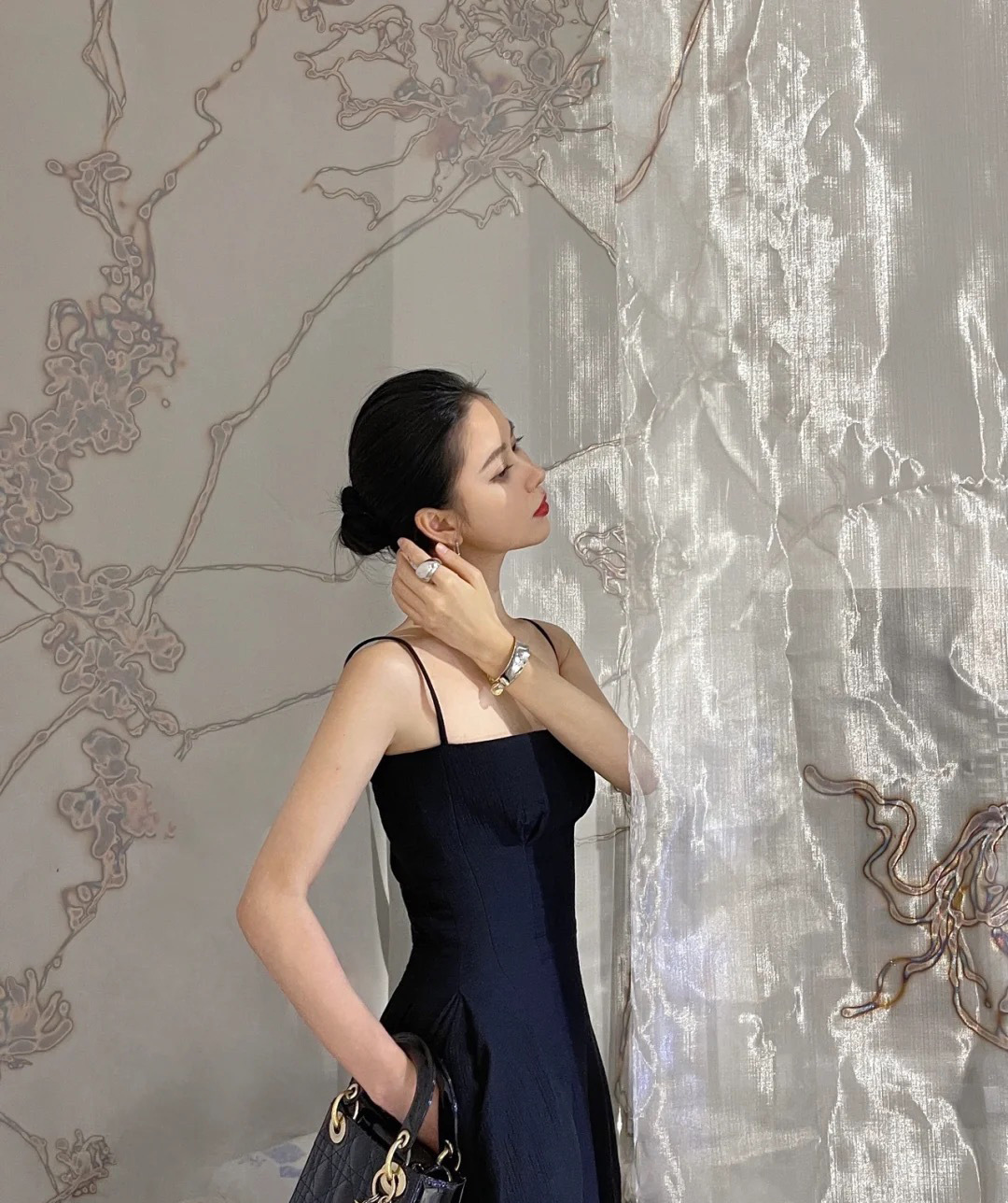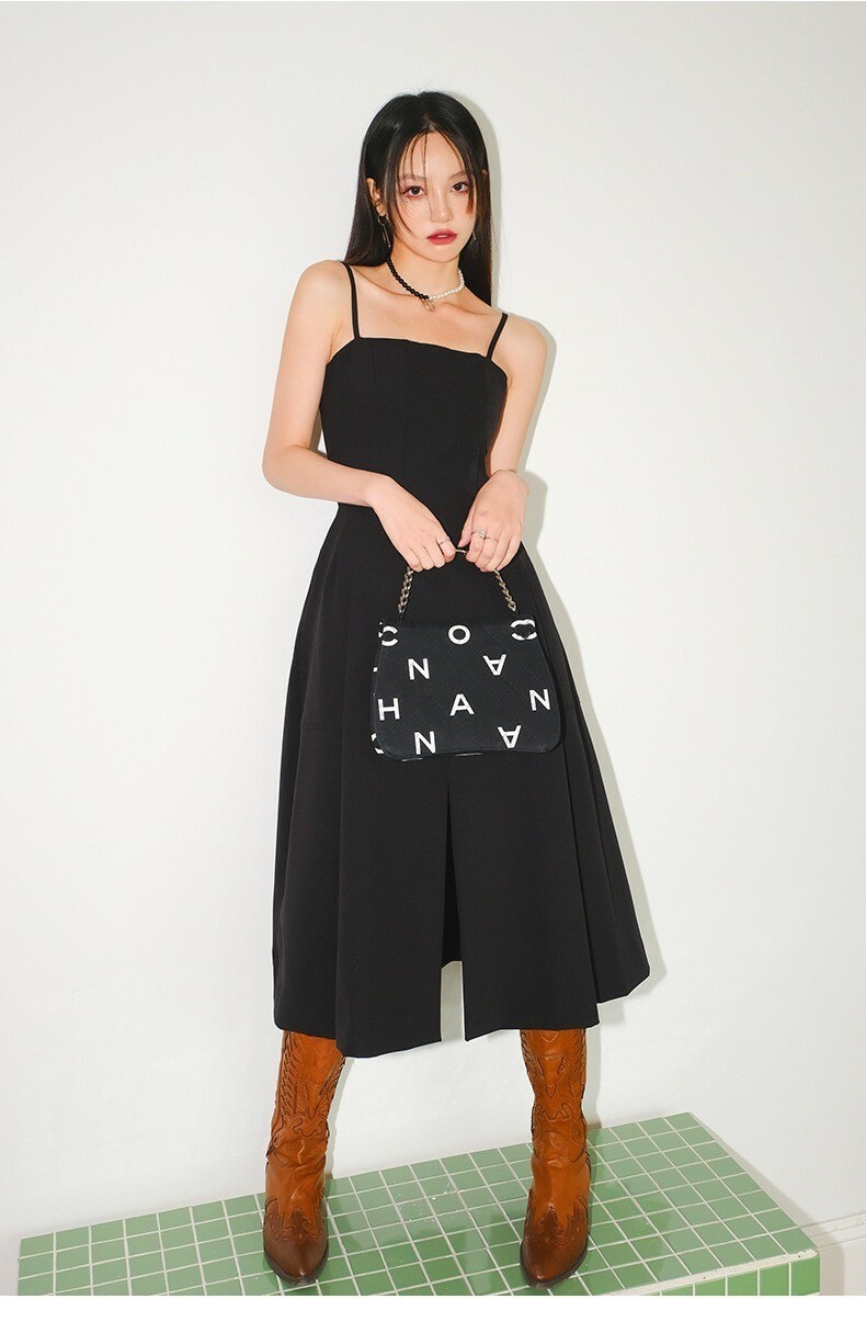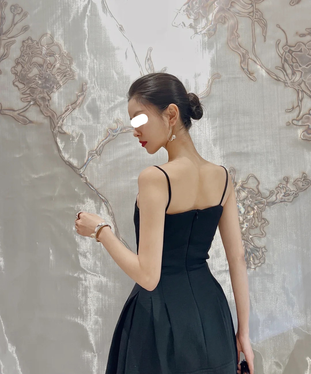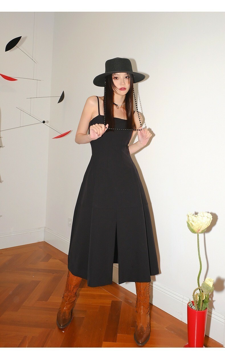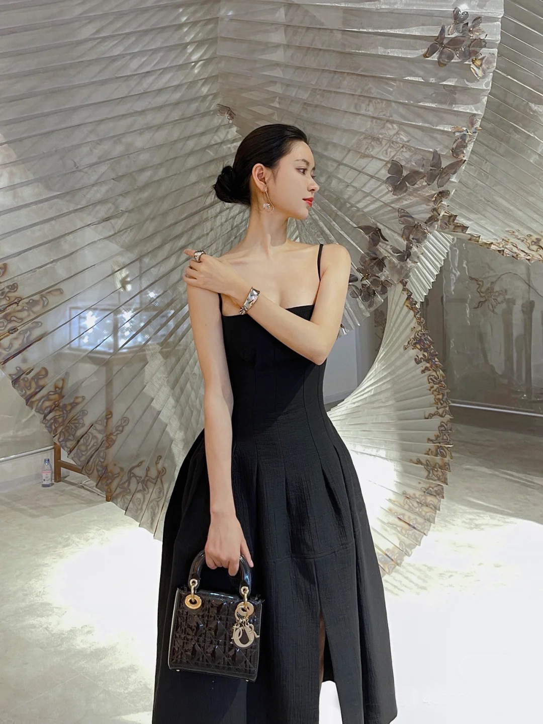 優雅動人的設計!這件優雅時尚的黑色洋裝展現出女性的魅力與自信。優雅方領勾勒迷人曲線,收腰設計突顯妳的纖細腰身。飄逸長裙襬加上前開衩,散發迷人知性美。無論是參加宴會或是日常約會,這件洋裝都能讓妳優雅迷人地亮相。