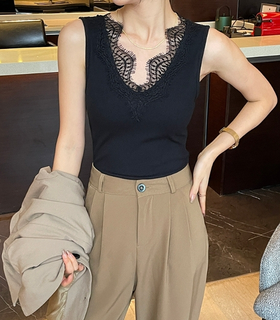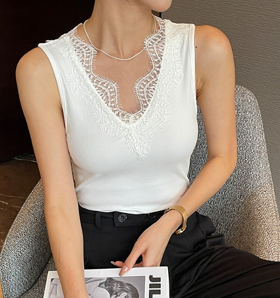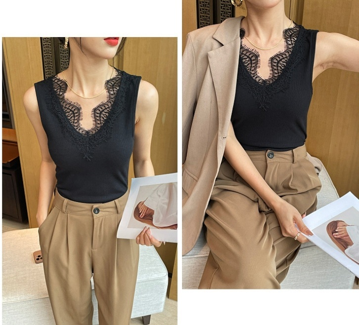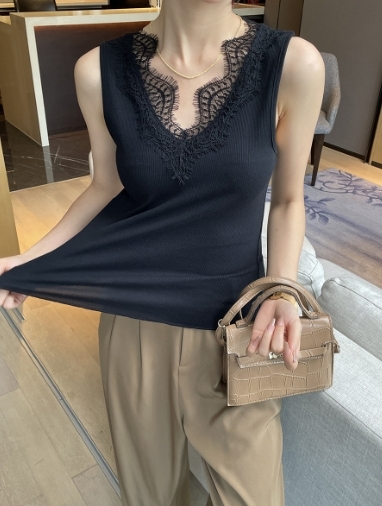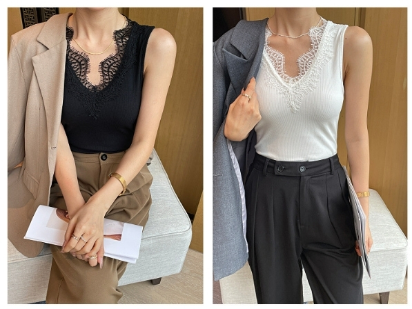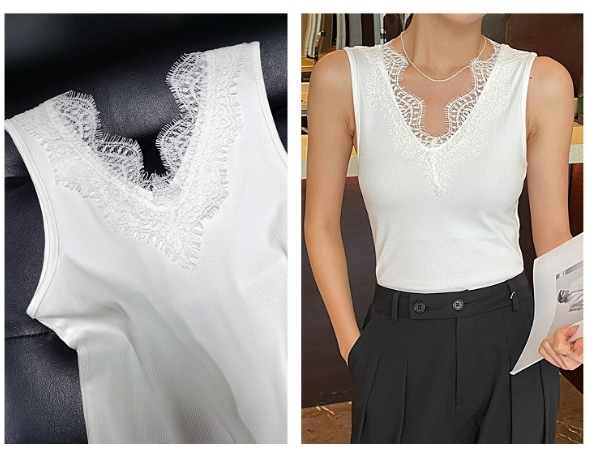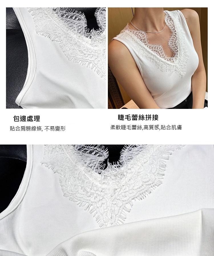 睫毛蕾絲V領背心(黑/白)