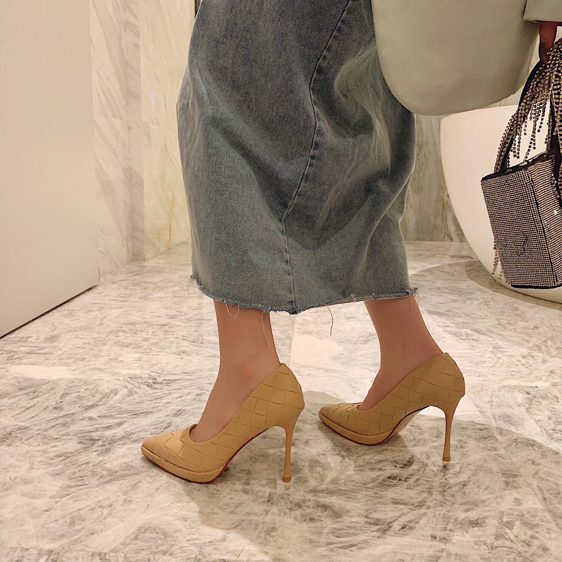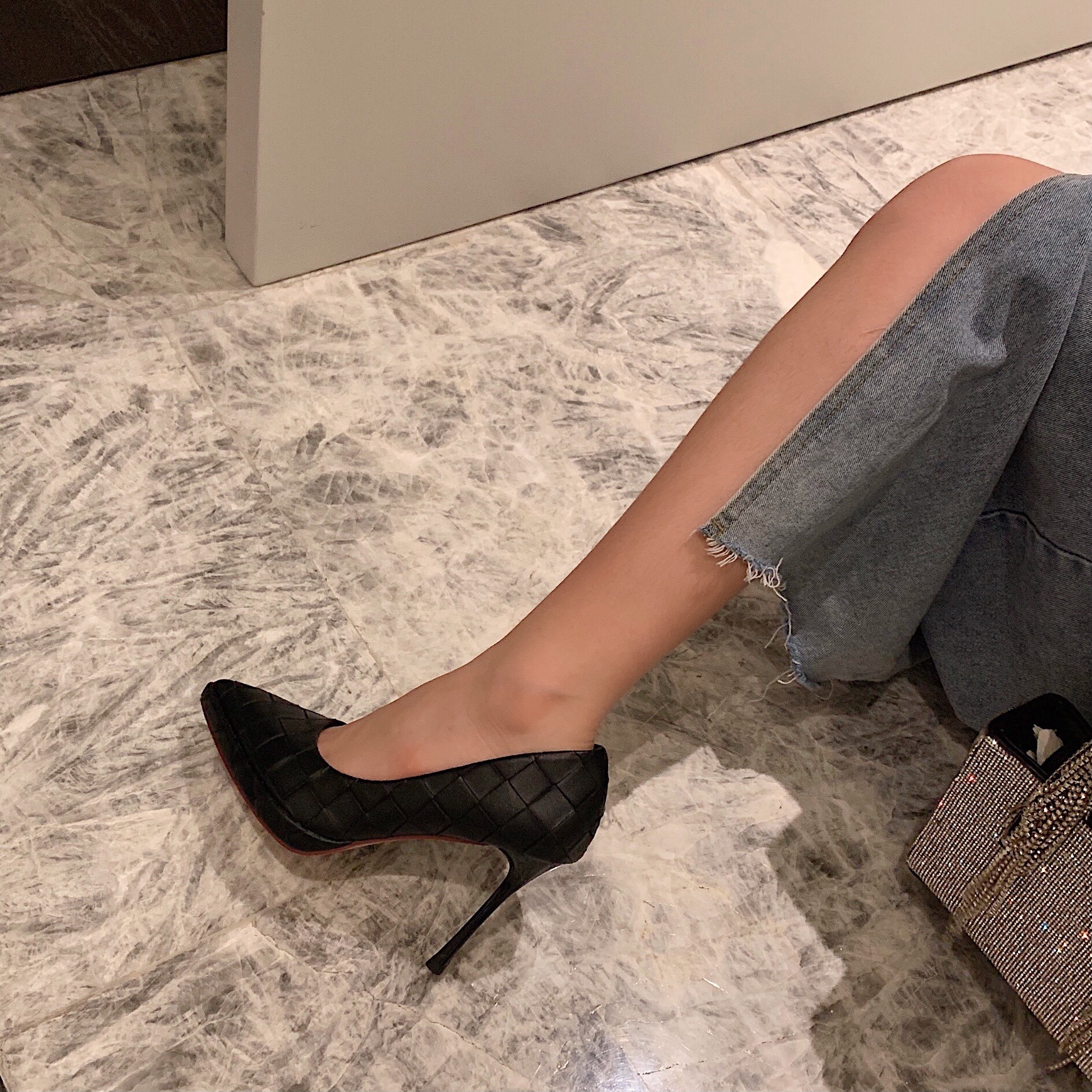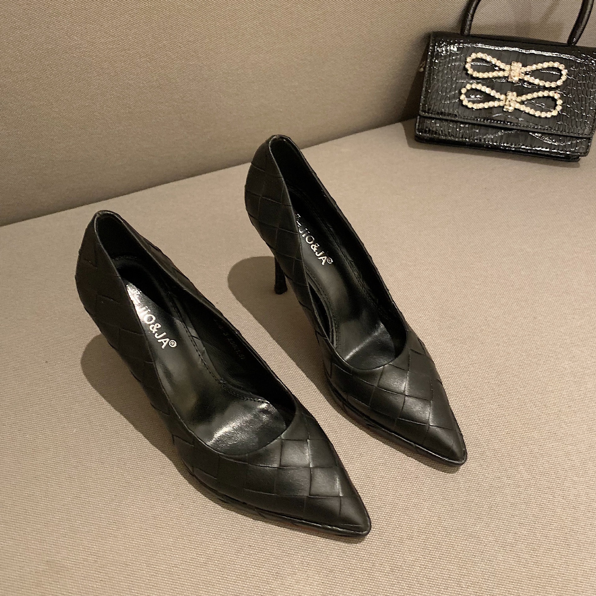 編織皮革跟鞋(35-40)(黑/藍/杏)