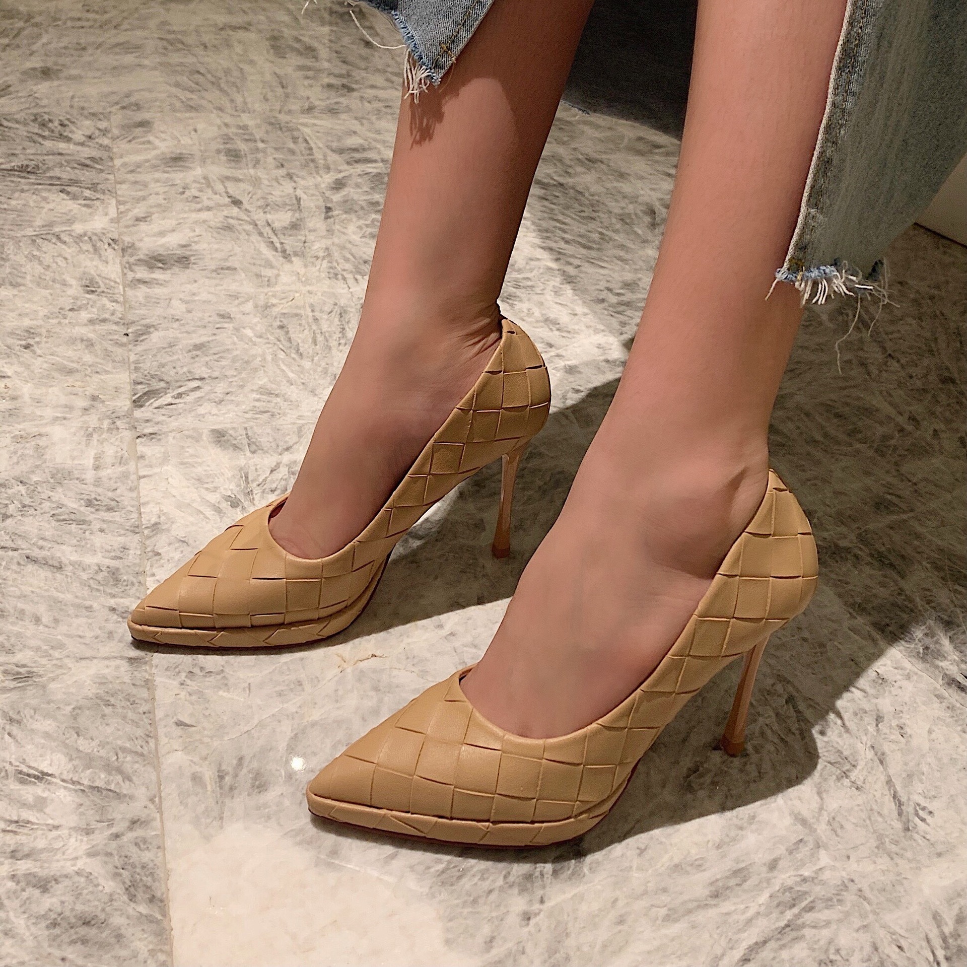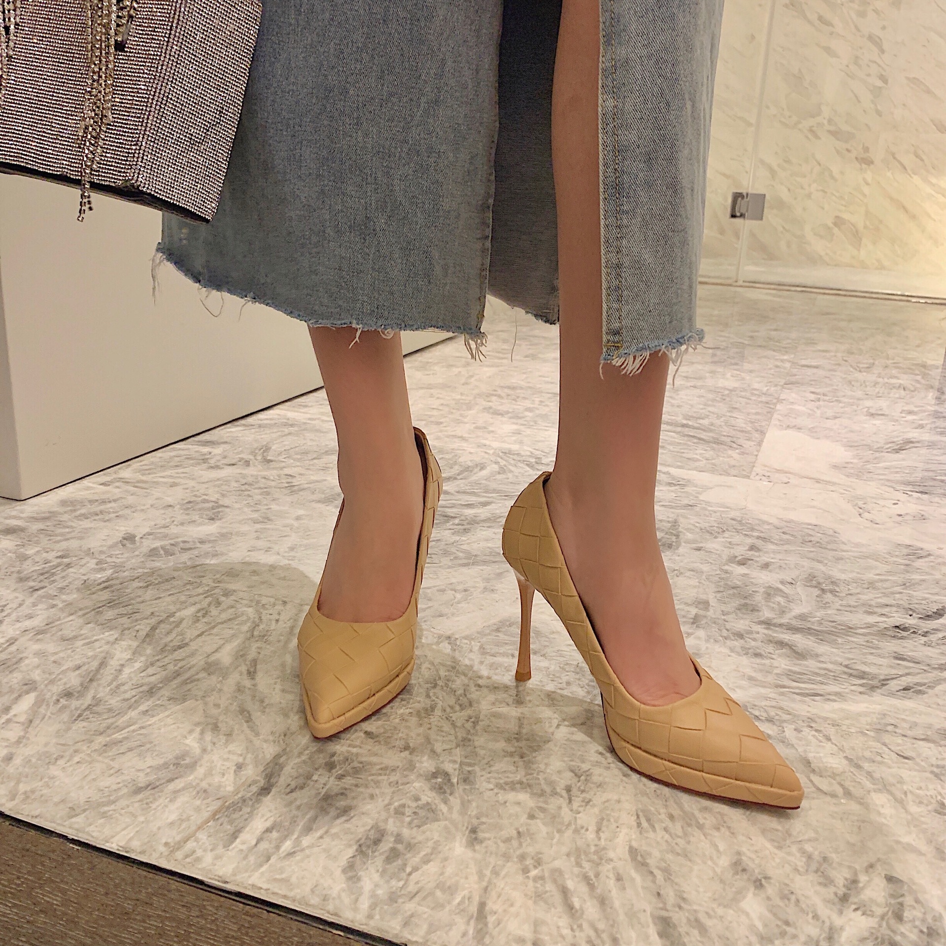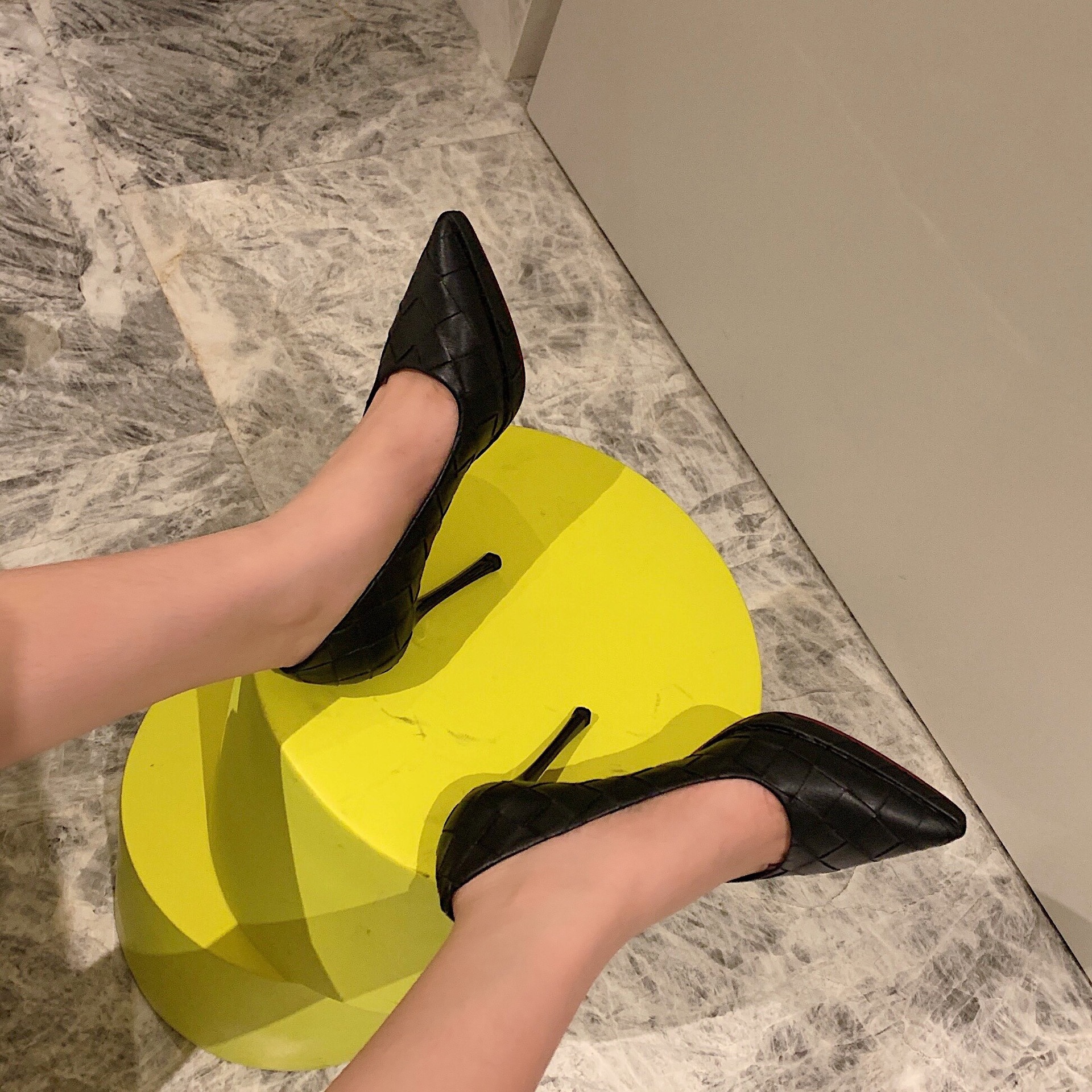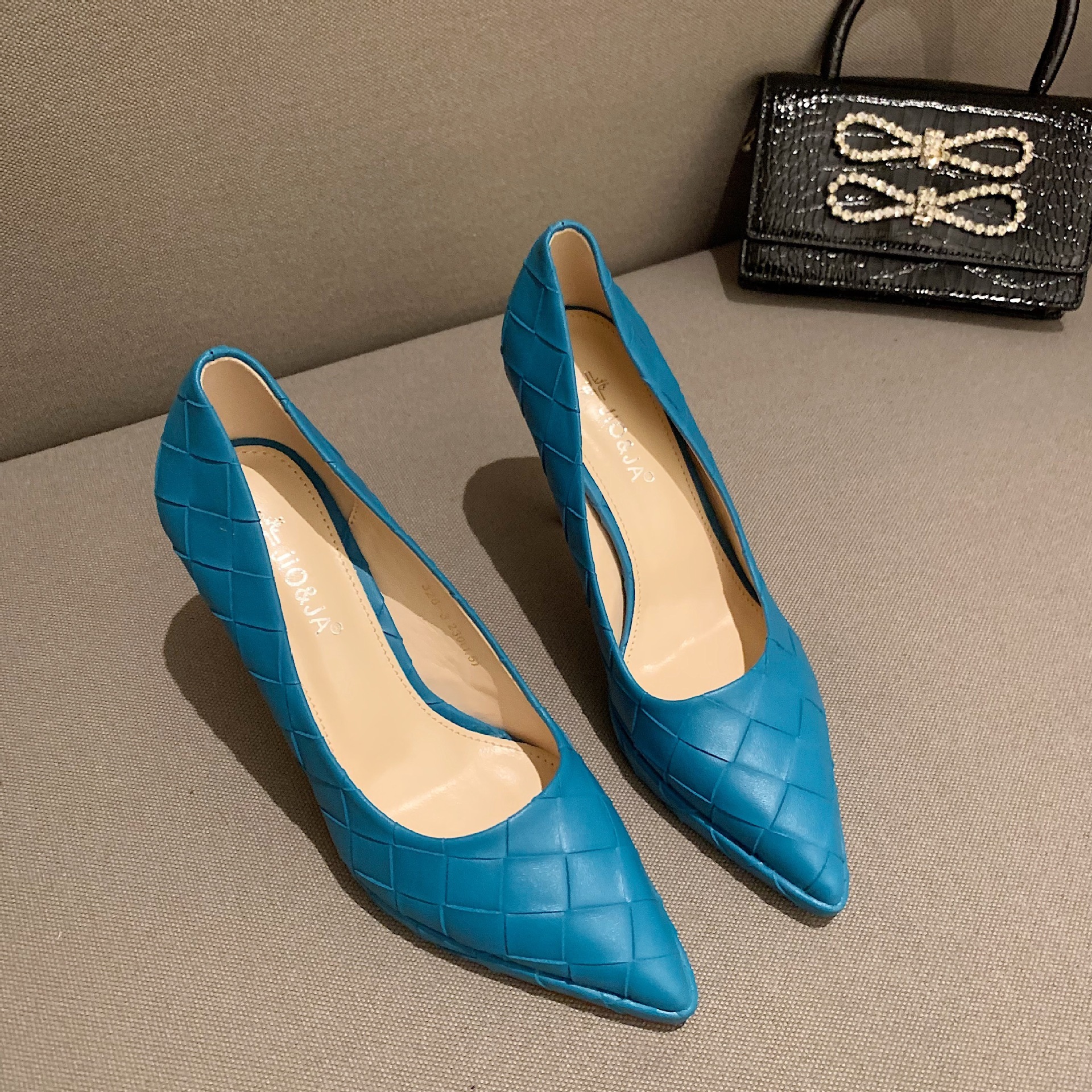 編織皮革跟鞋(35-40)(黑/藍/杏)